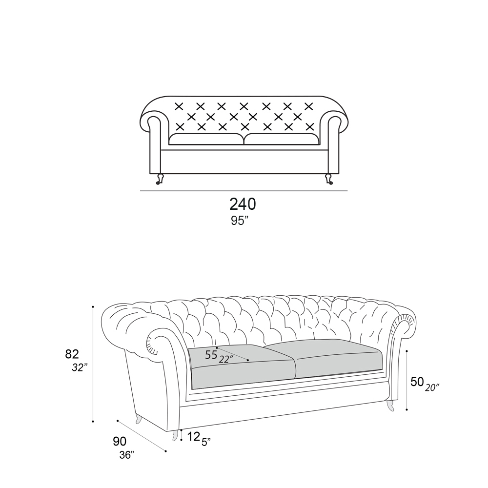 - comprimento: 240 x profundidade: 90 x altura: 82 cm
