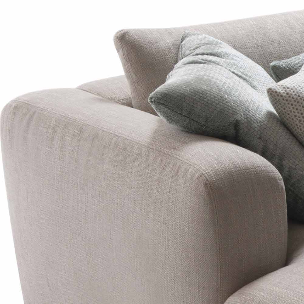 As formas da almofada do assento, generosas e abundantes, oferecem um conforto inesperado; em vez disso, as formas compactas e simples do sofá permitem criar muitas composições diferentes.