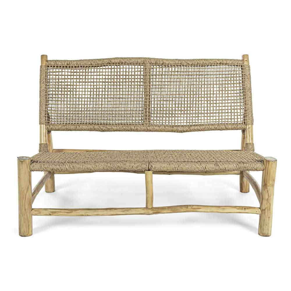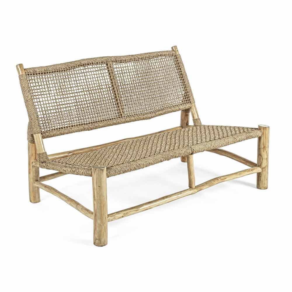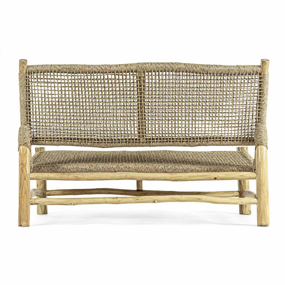 Sofá de exterior 2 lugares em ramos de teca com assento e encosto em fibra.