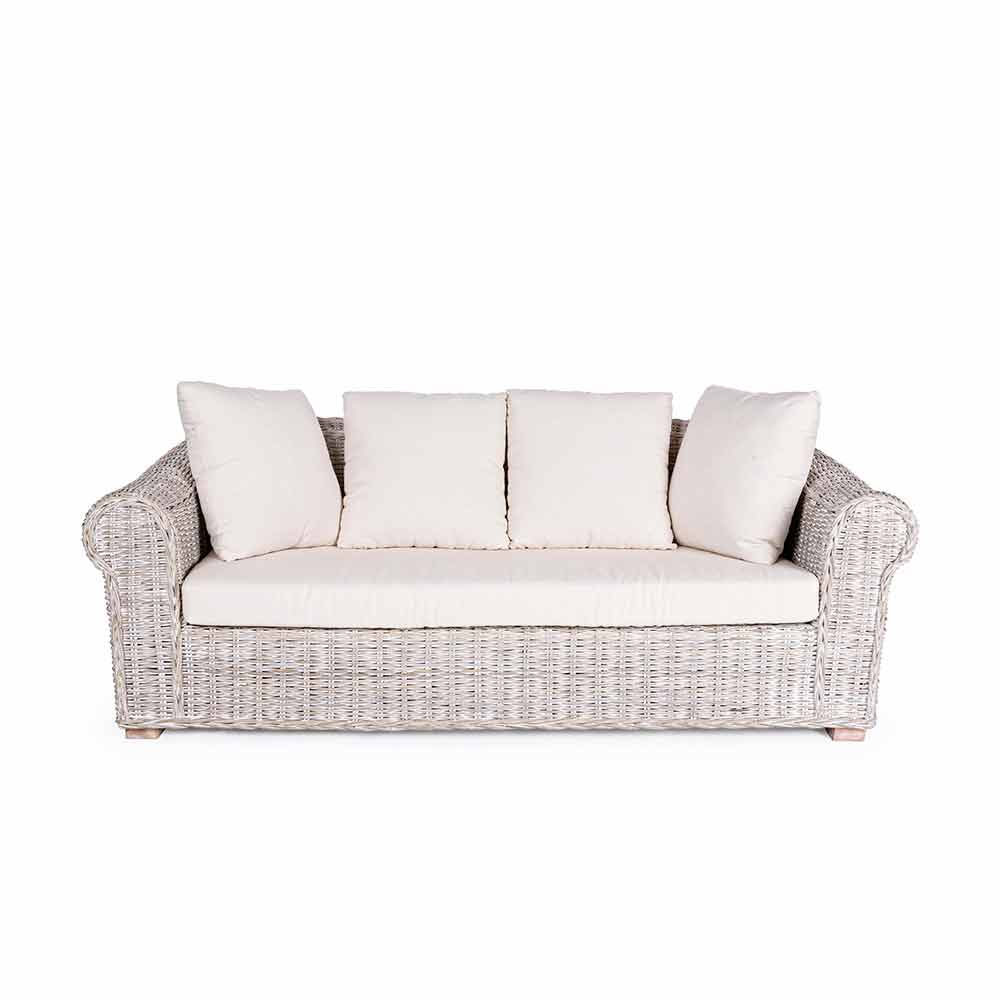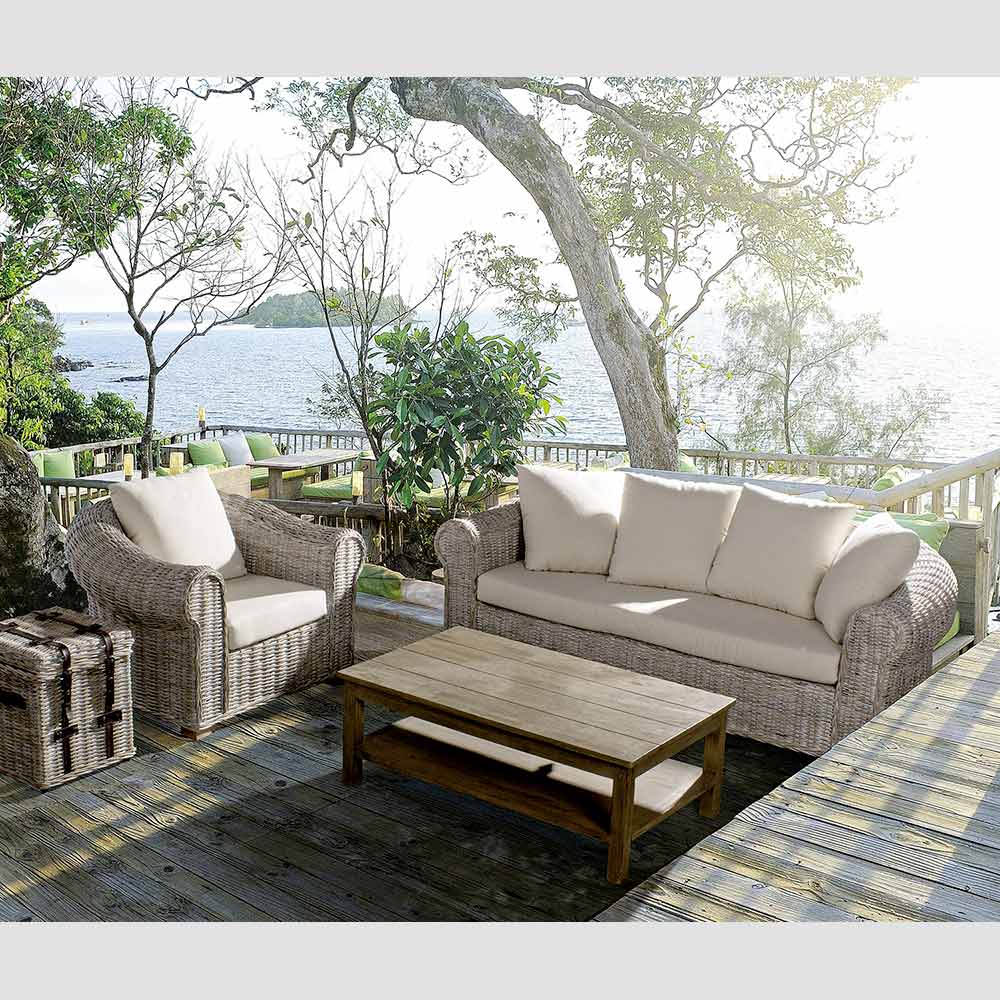 Sofá de três lugares de design étnico para uso interno ou externo, feito de vime e kubu.