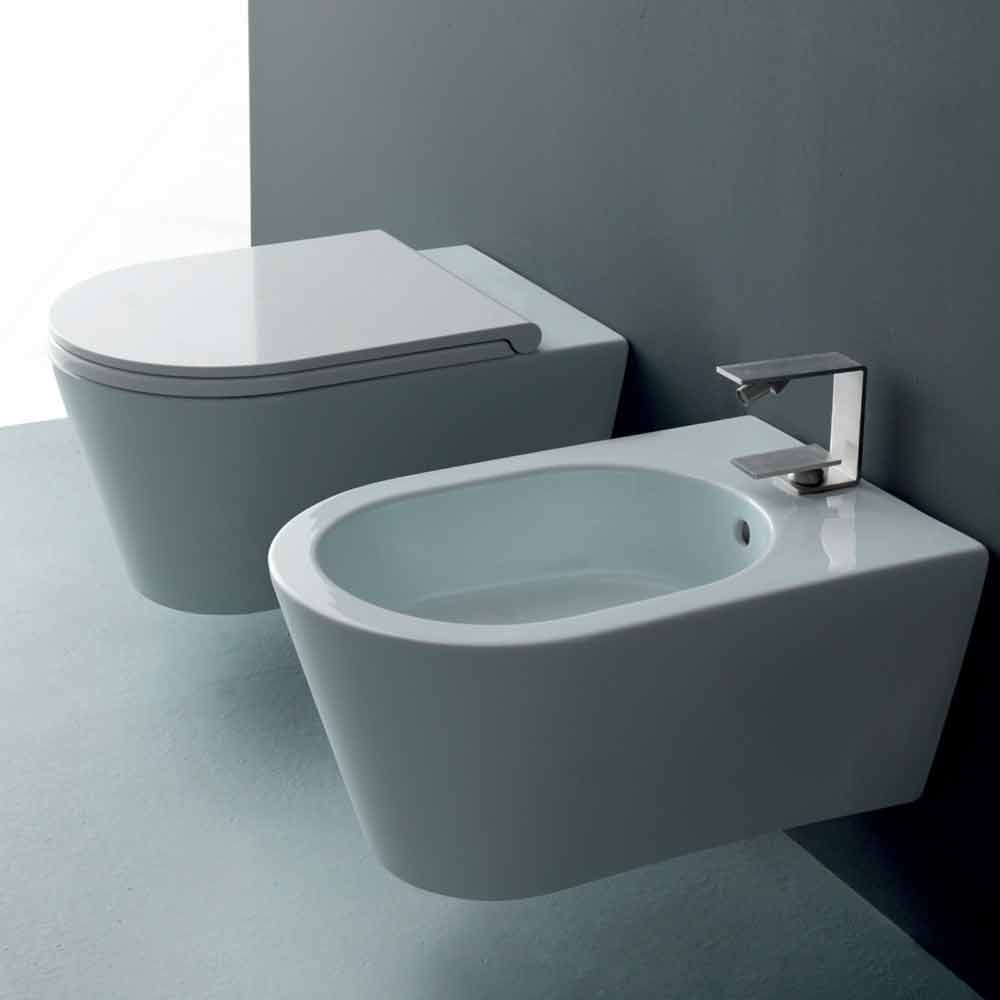 Sun Round moderno vaso sanitário suspenso de cerâmica 57x37 cm, fabricado na Itália