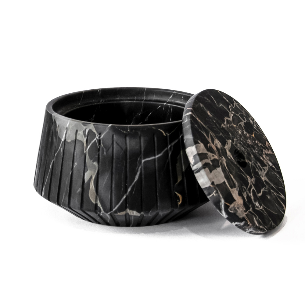 Porta-objetos listrado em mármore Carrara branco ou desenho Portoro preto feito na Itália.