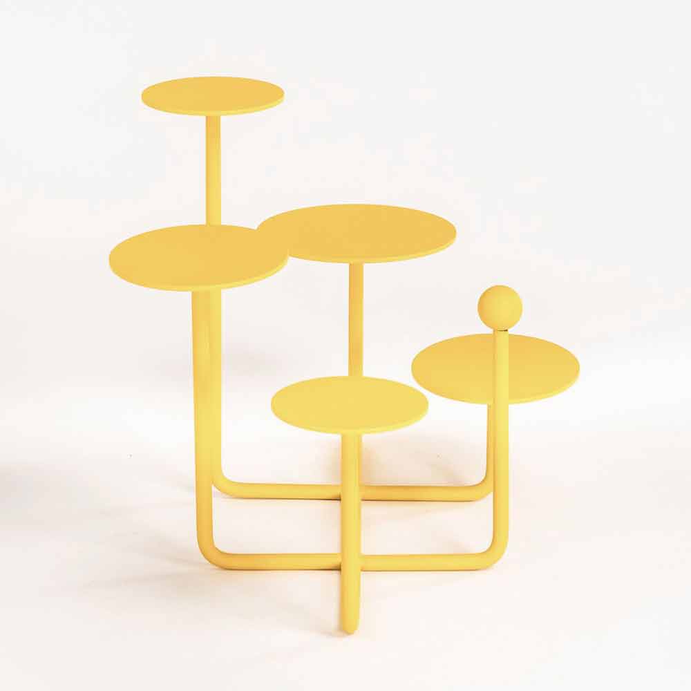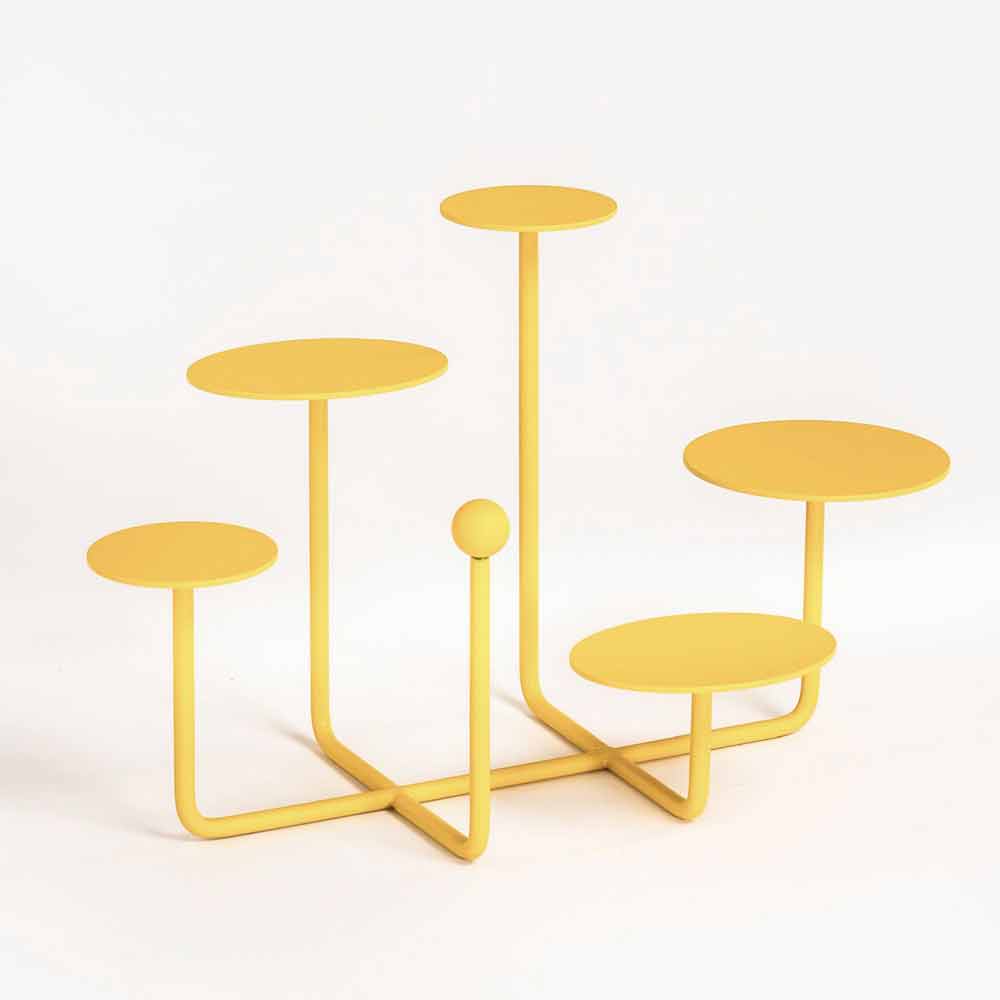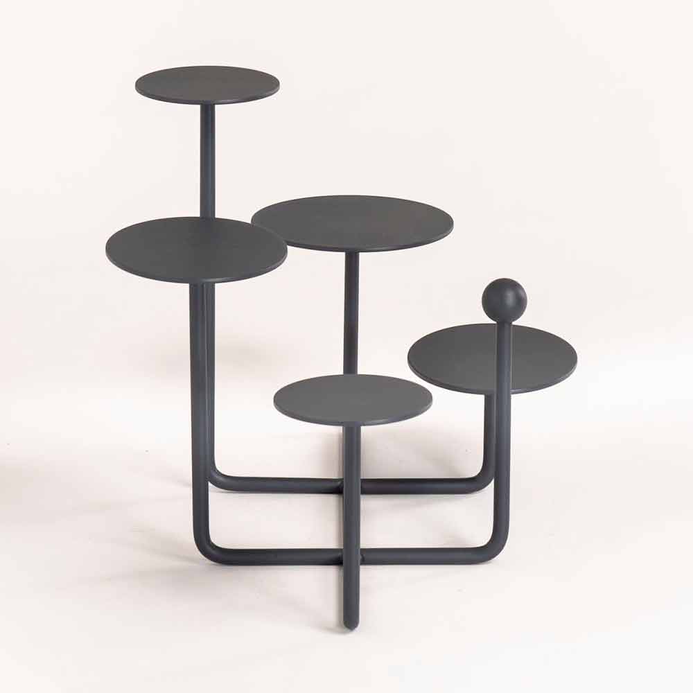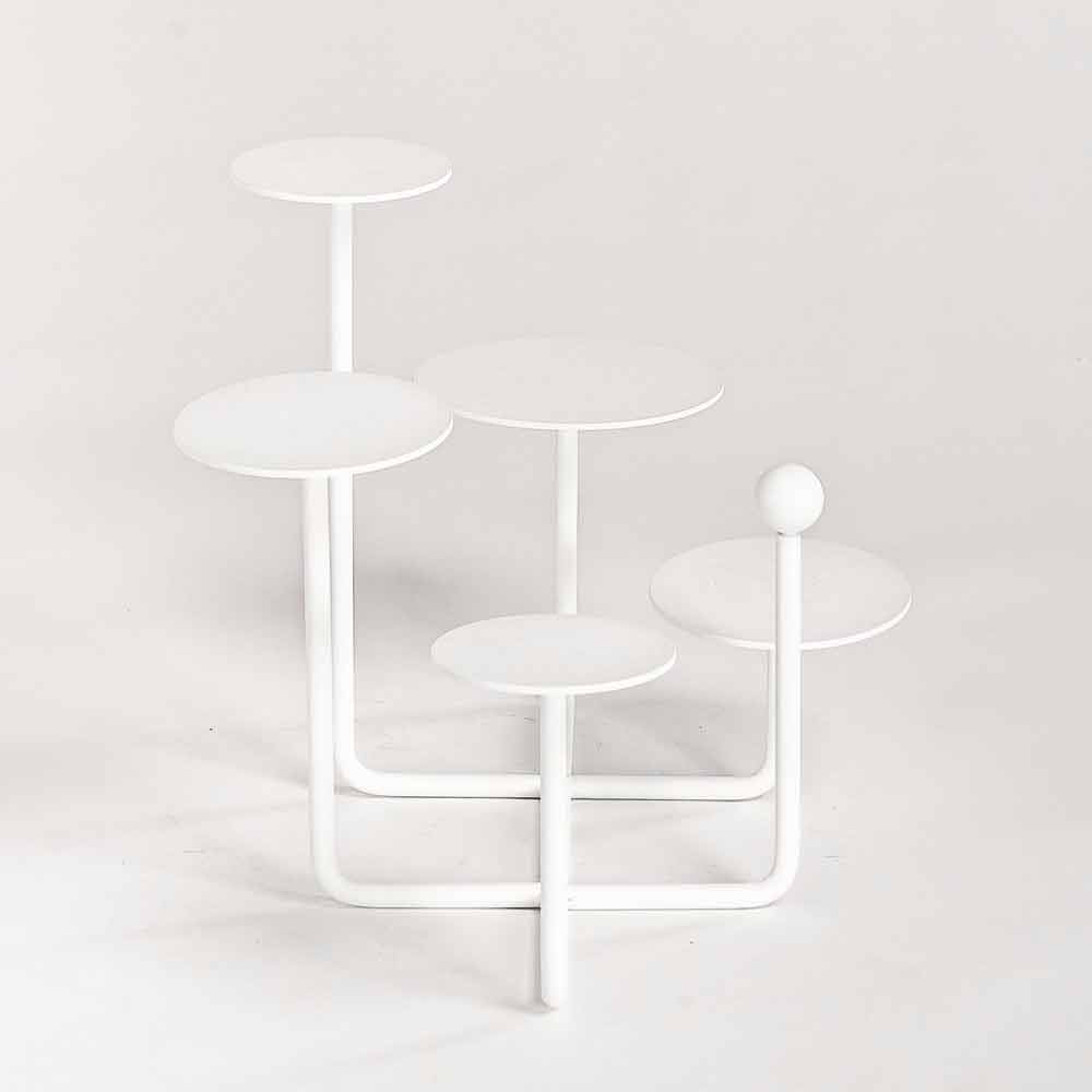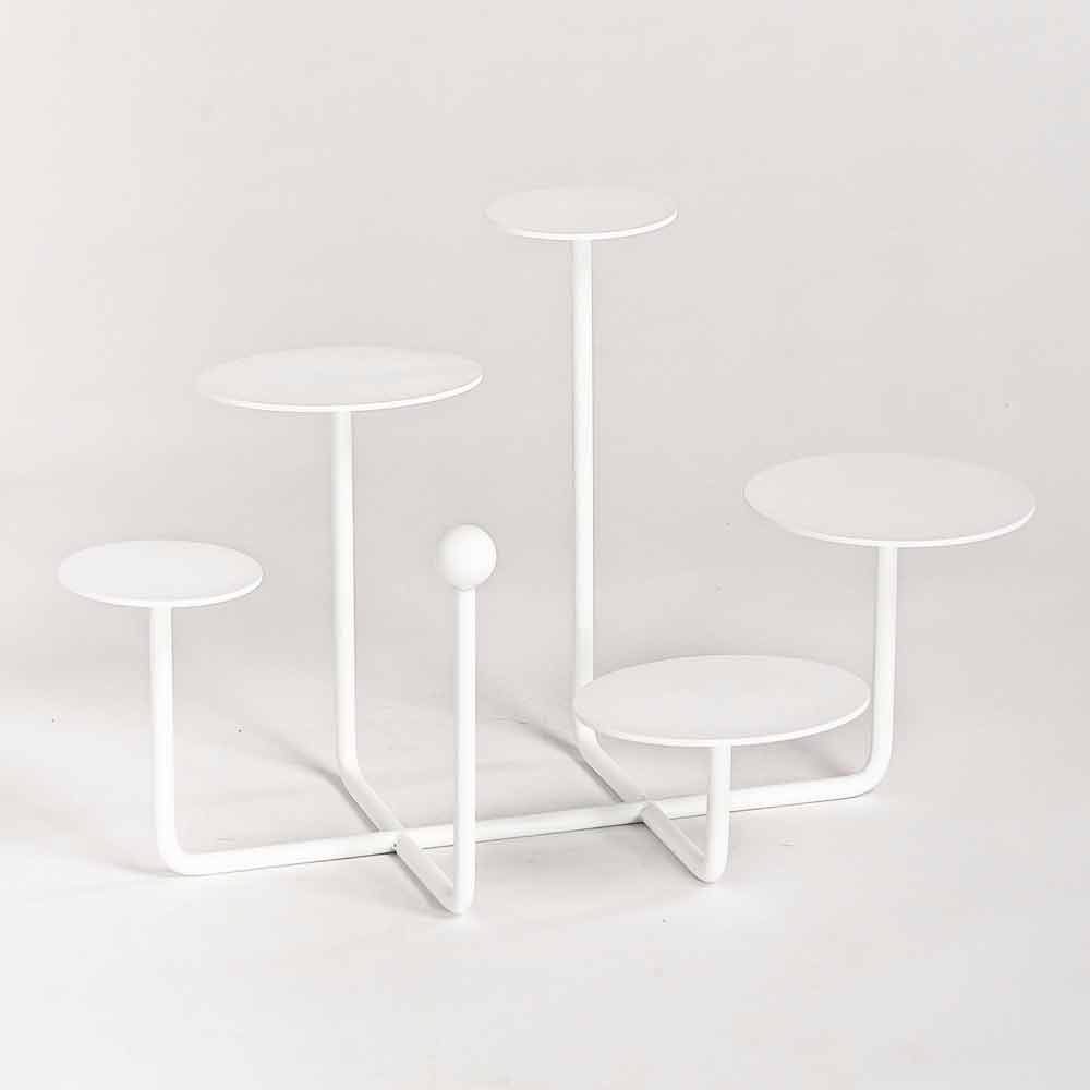 Este backsplash é inteiramente fabricado em Itália em aço pintado RAL o que confere ao produto um design moderno e requintado e a sua estrutura é composta por 5 práticos tampos redondos colocados a diferentes alturas ideais para pequenos pastéis ou petiscos. Graças à sua forma e tamanho reduzido, este produto é ideal para ser colocado na mesa como um verdadeiro elemento de design que ajuda a tornar cada criação culinária numa verdadeira obra de arte.