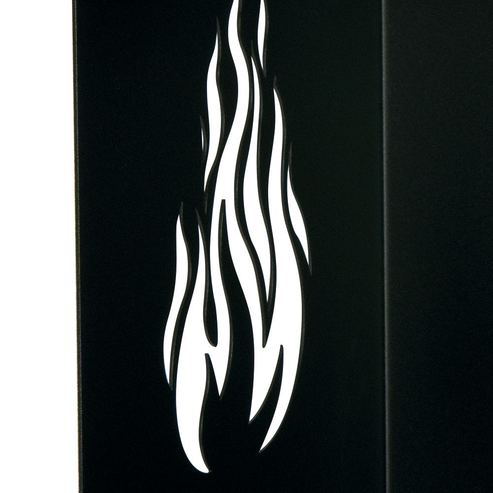 Este porta-lenhas em metal combina funcionalidade prática com um design atraente para enriquecer o espaço da sua lareira. A estrutura preta é resistente e robusta, projetada para acomodar uma quantidade generosa de madeira. Os cortes à chama nas laterais servem não só como elementos decorativos, mas também garantem uma ventilação correta, essencial para manter a madeira seca.