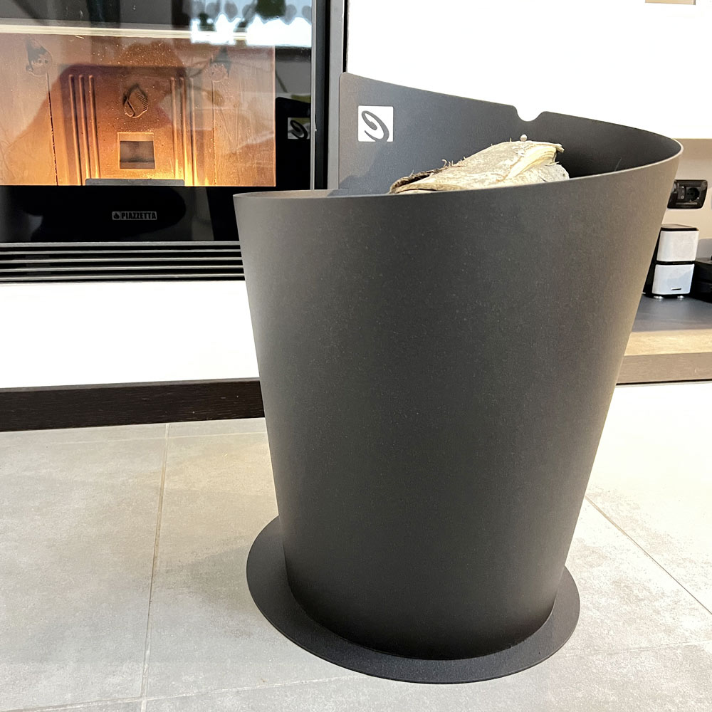 Porta-toras redondo de design moderno e minimalista para lareira de interior em aço preto, fabricado na Itália.