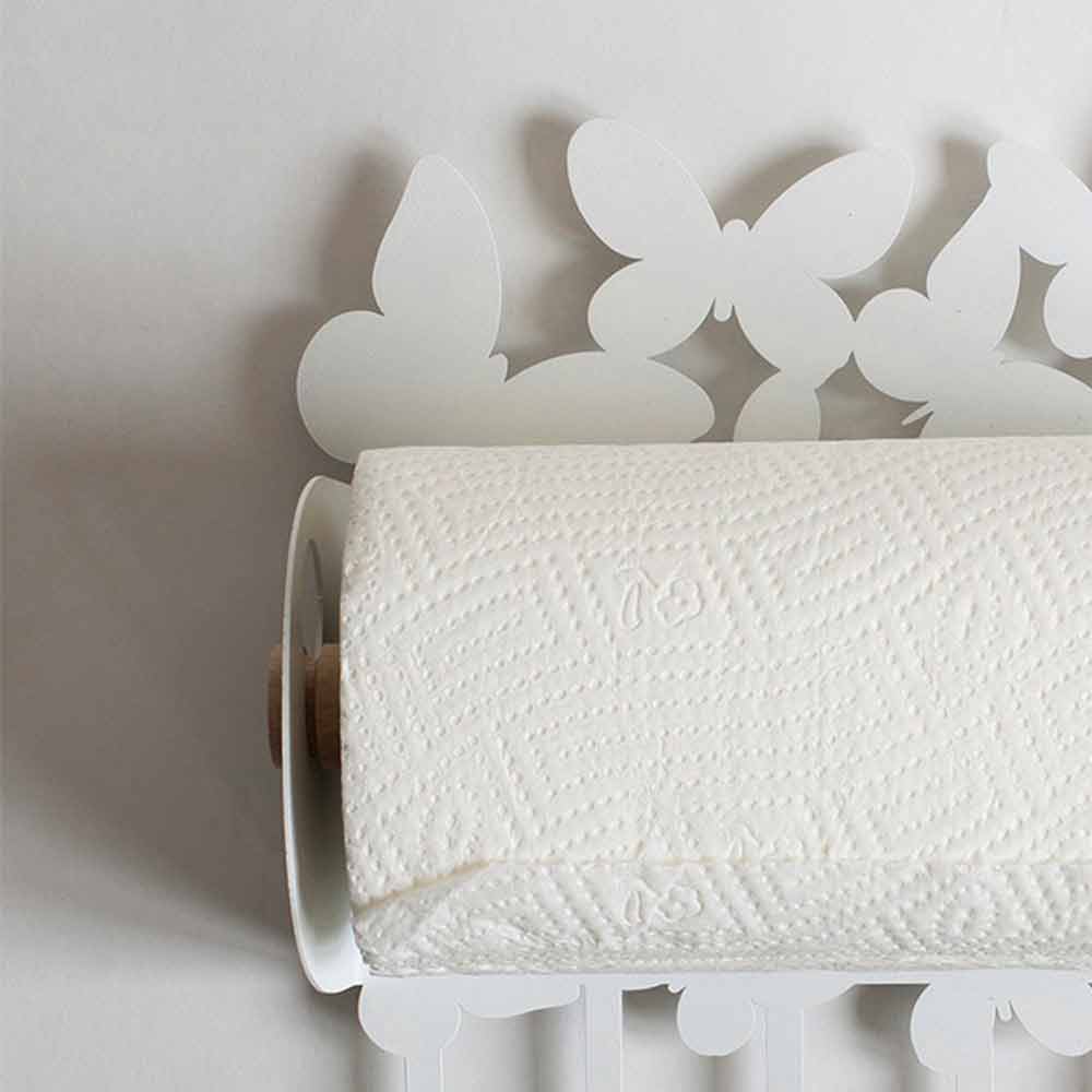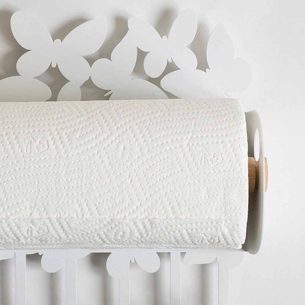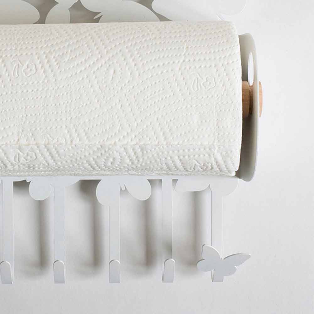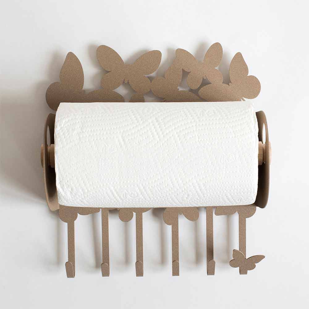 Suporte para rolos de cozinha de parede de design moderno em ferro branco ou bege, artesanal na Itália.