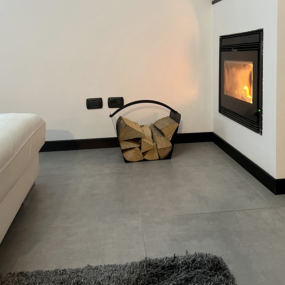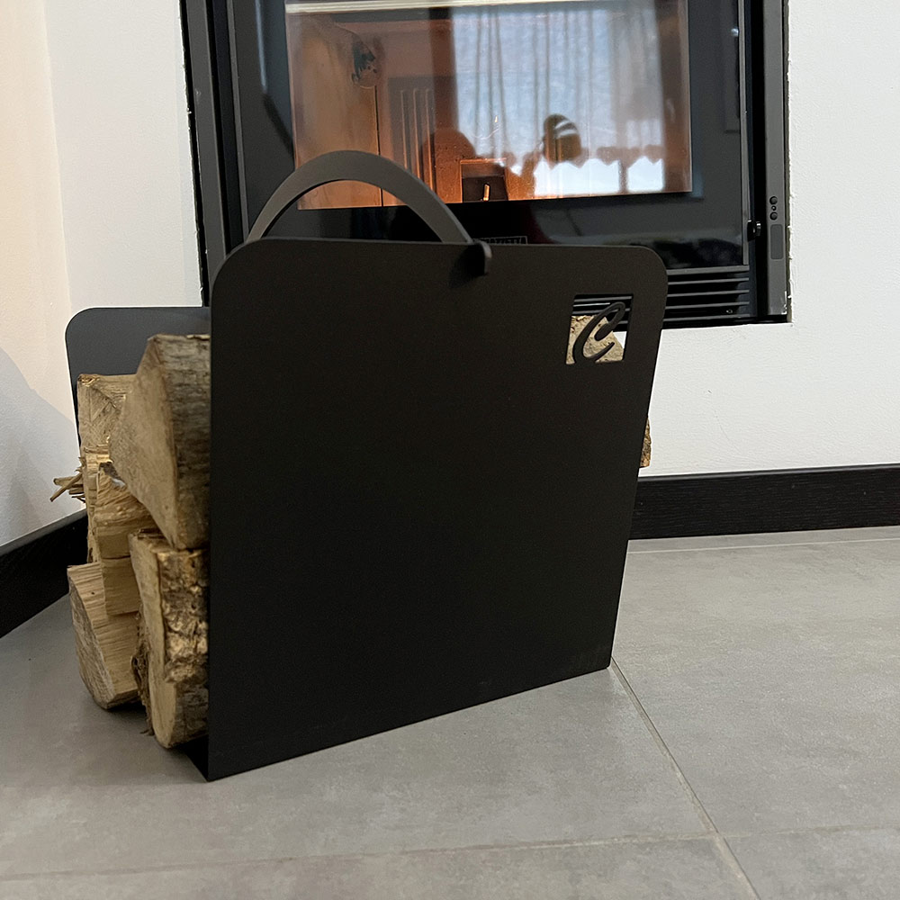 Portalegna para design de lareira em qualidade não tóxica de aço com revestimento em pó. Desenhado, desenhado e feito à mão na Itália, com o objetivo de destacar não só a utilidade do porta-toras em si, mas também o seu valor estético, com seu design minimalista em forma de cesto estilizado.