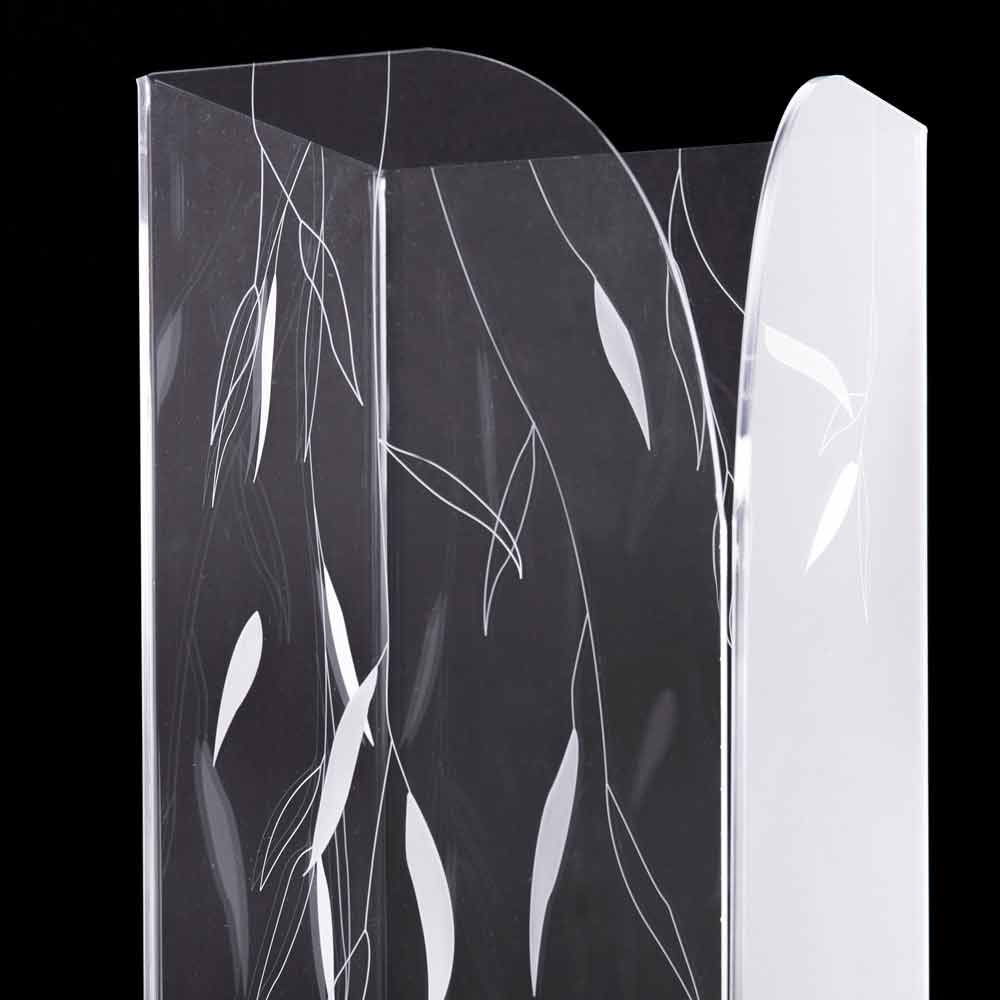 Porta guarda-chuvas em plástico transparente com folhas decorativas gravadas a laser, feito em design italiano.