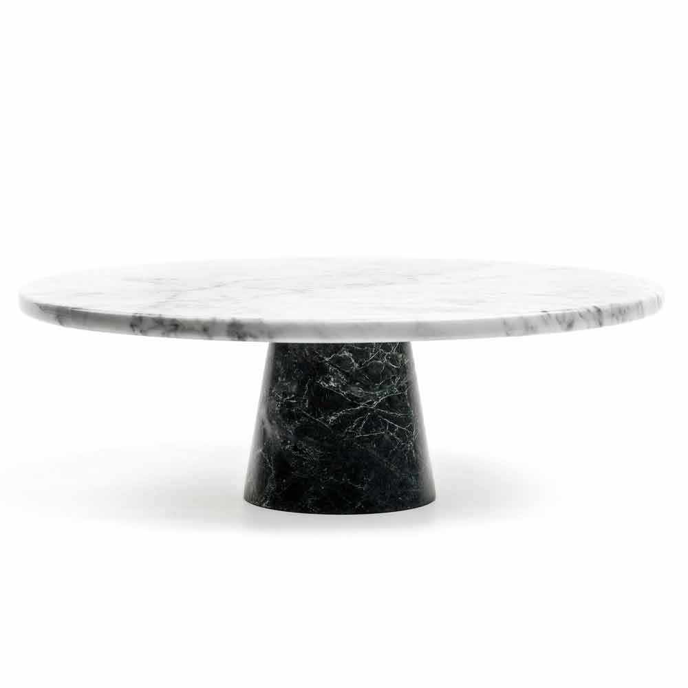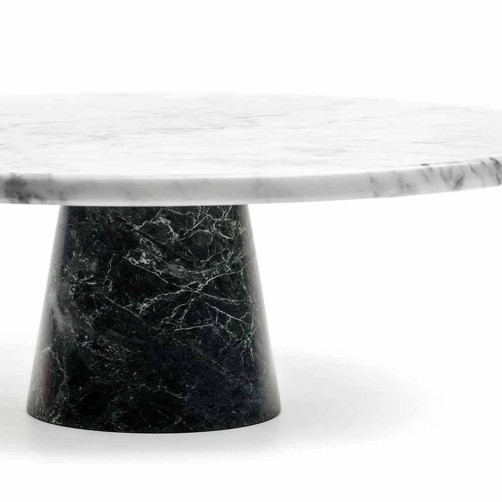 Carrinho de bolo moderno e elegante com tampo em mármore Carrara branco e base em mármore Marquinia preto. Fabricado em mármore fino de alta qualidade. É uma peça única, pois cada bloco de mármore utilizado difere dos demais pelos veios e tonalidades.