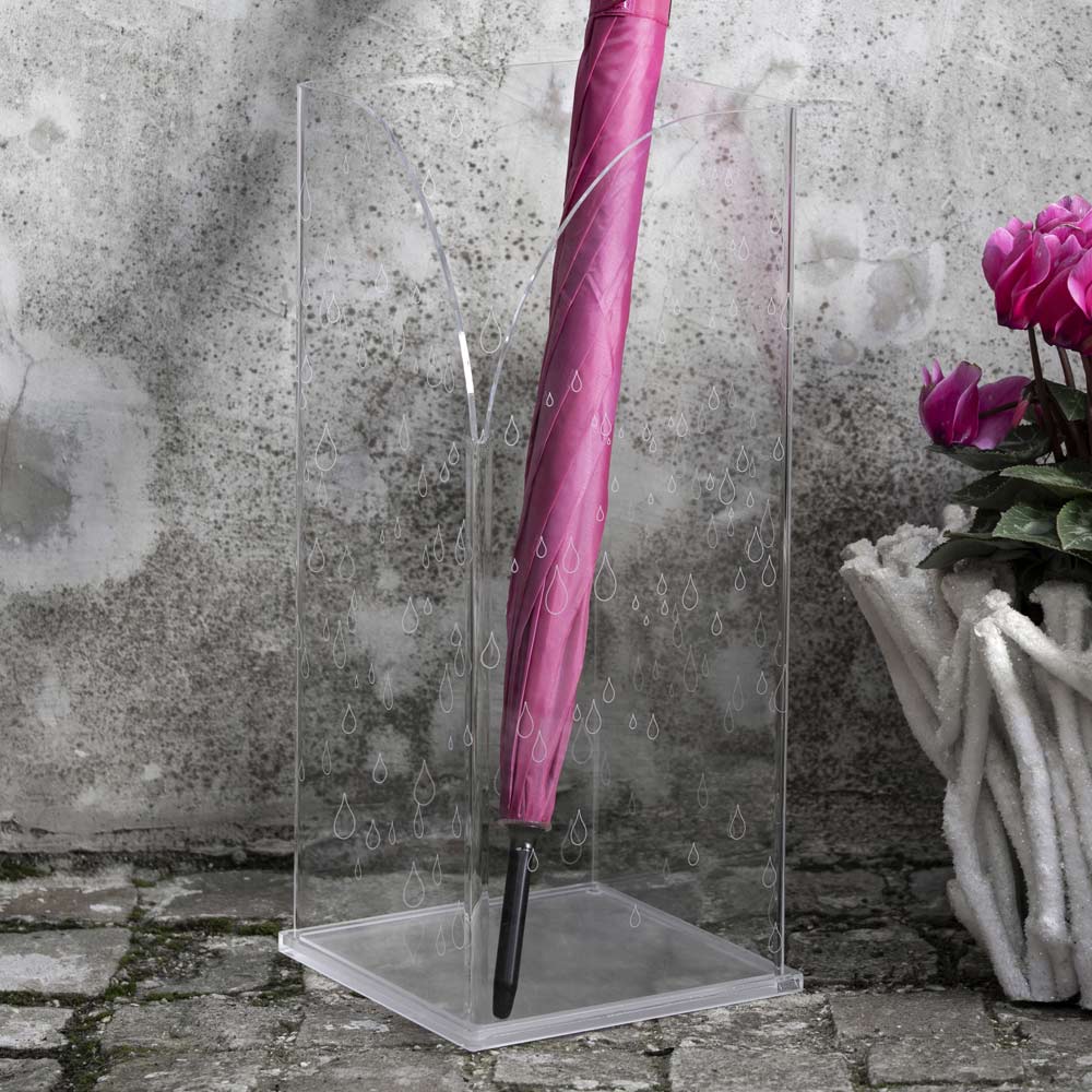 Porta guarda-chuvas em cristal acrílico transparente com gotas de decoração made in Italy.