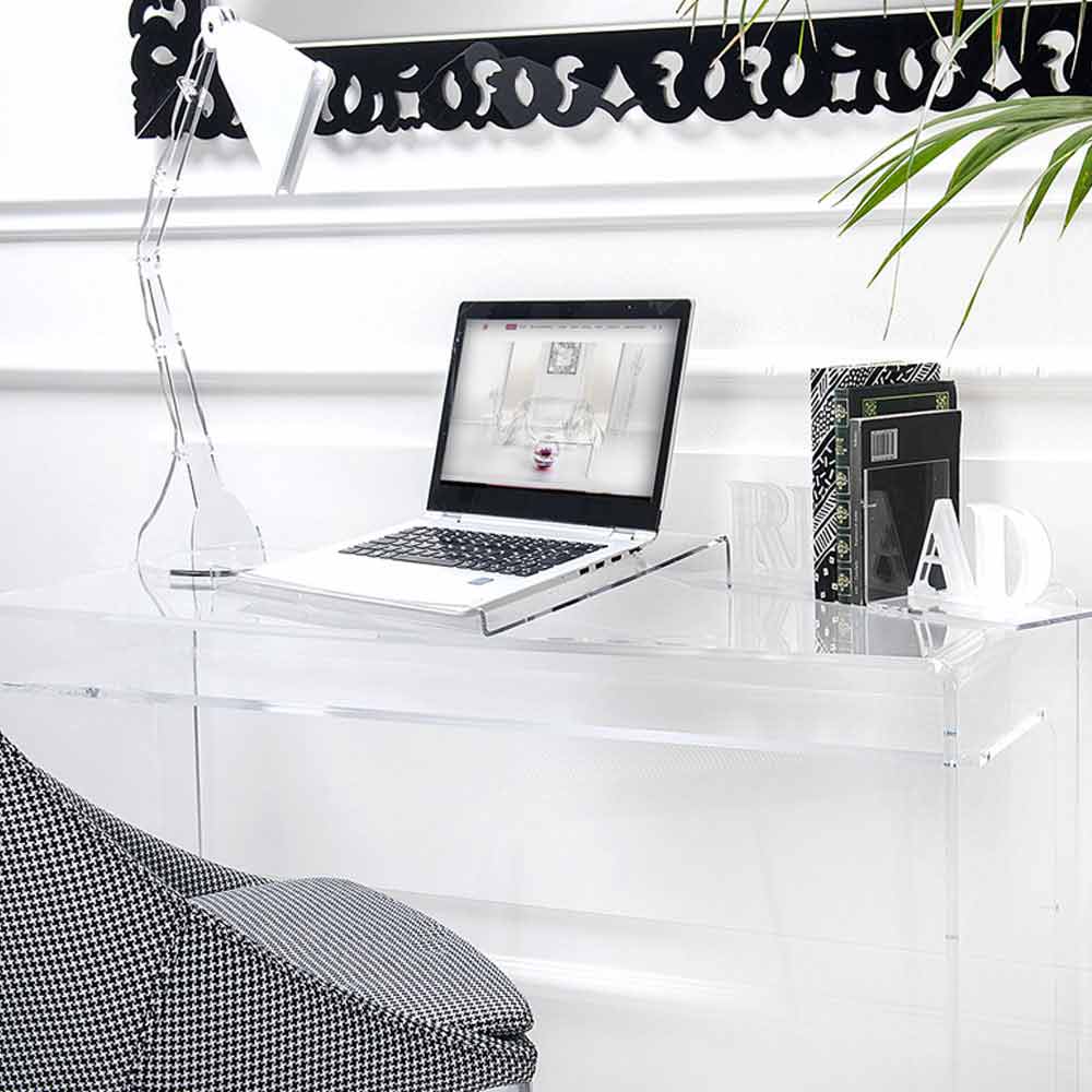Fabricado em plexiglass transparente ou fumê de polímero 100% virgem, é o aliado perfeito para trabalhar a partir de casa com conforto e pode se apresentar como uma ideia original para presentes de Natal para quem deseja um complemento de design prático e funcional . O material, resistente e de alta qualidade, garante um brilho e brilho constantes ao longo do tempo.