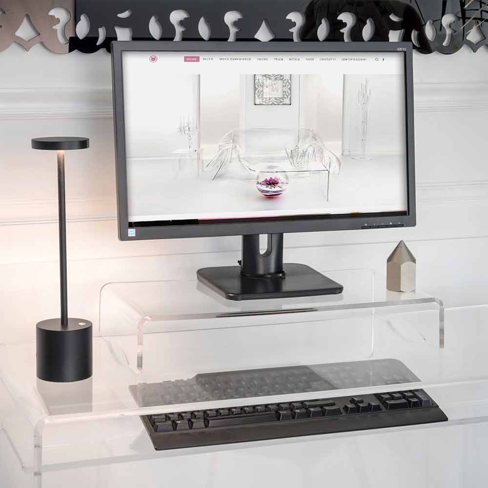 Suporte para monitor em plexiglass transparente ou fumê de design made in Italy.