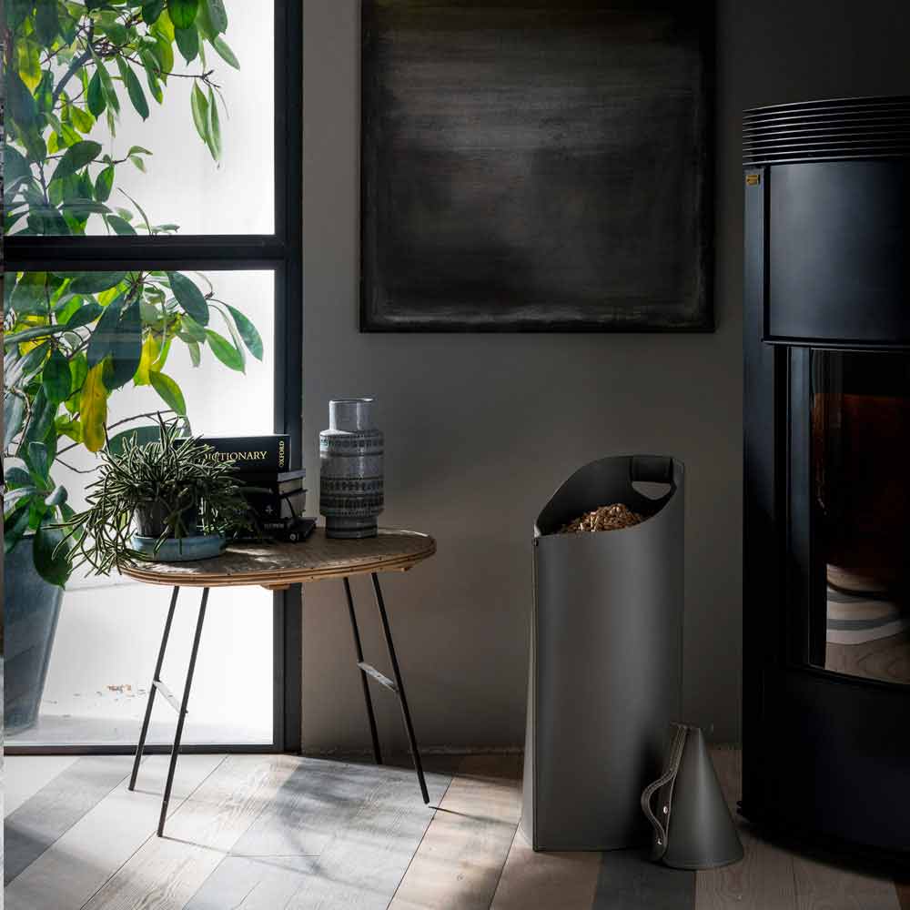 Suporte para pellets de madeira em couro Sapir, design moderno