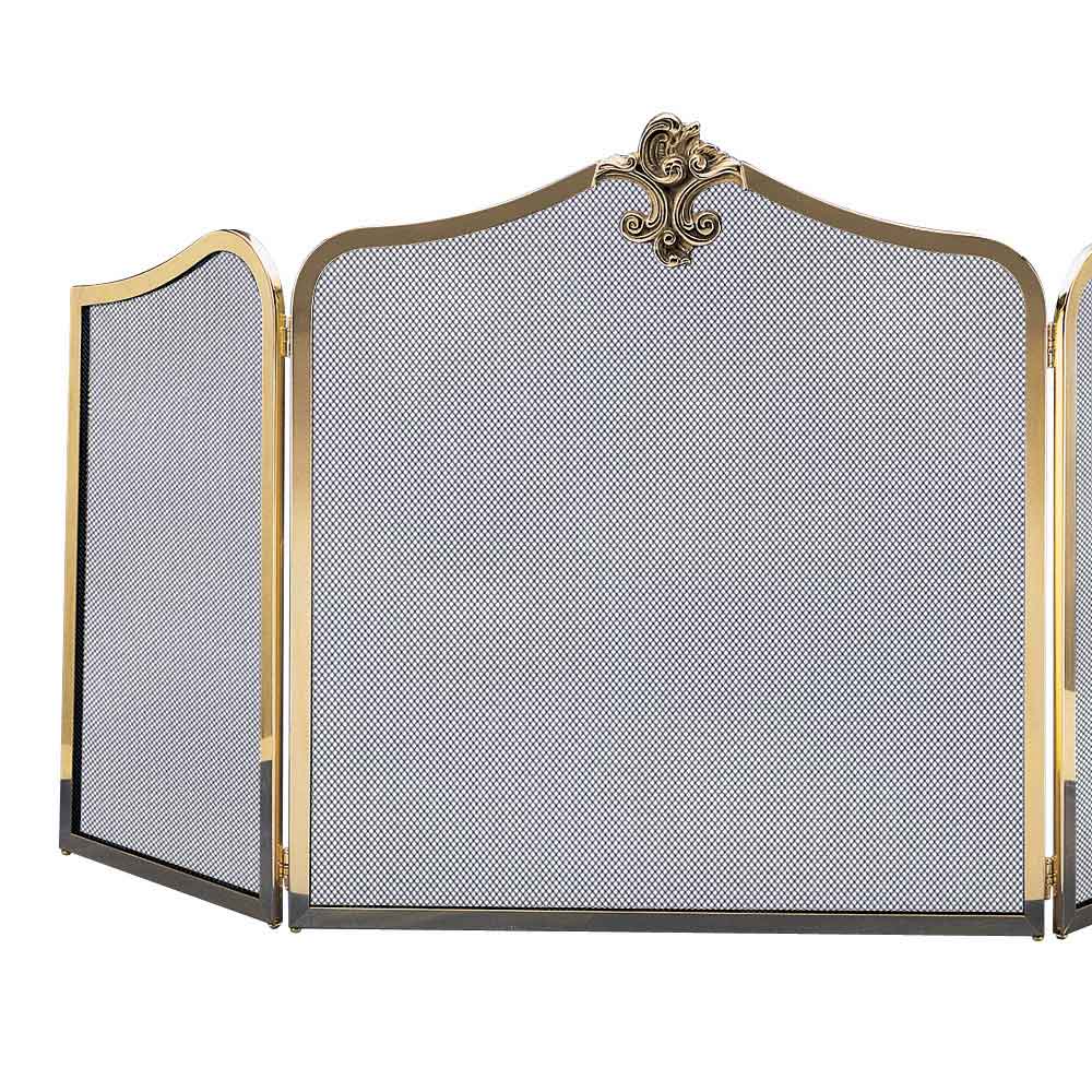 Esta tela de faísca para lareira é um acessório de luxo que combina funcionalidade com um design refinado . A estrutura de latão enquadra uma malha de aço finamente tecida que retém faíscas sem obstruir a visão das chamas. A parte superior é embelezada com um ornamento decorativo em latão , que adiciona um toque sofisticado de esplendor antigo.