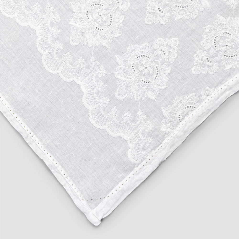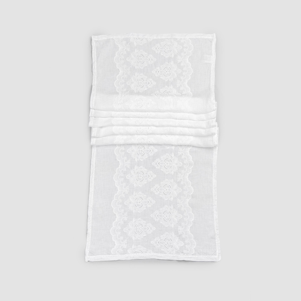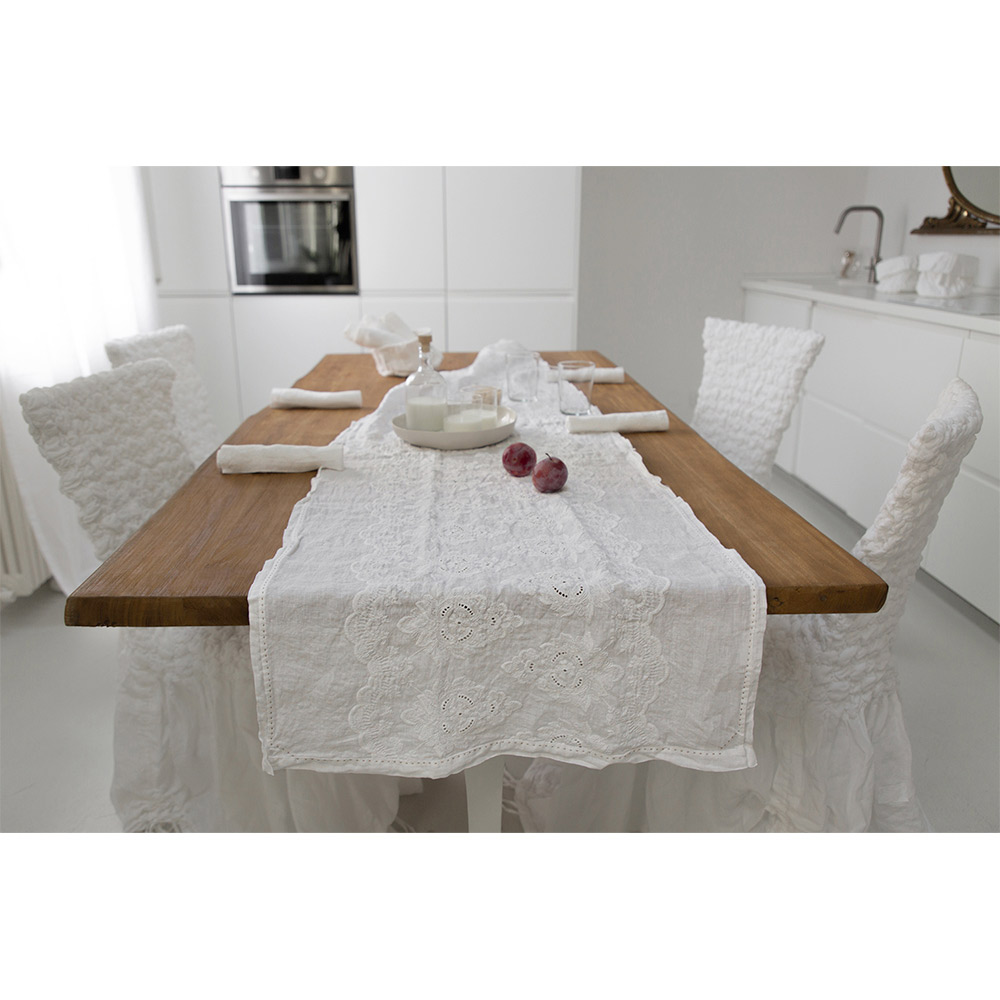 Corredor de mesa de linho puro com bordado de algodão, design elegante de luxo made in Italy.