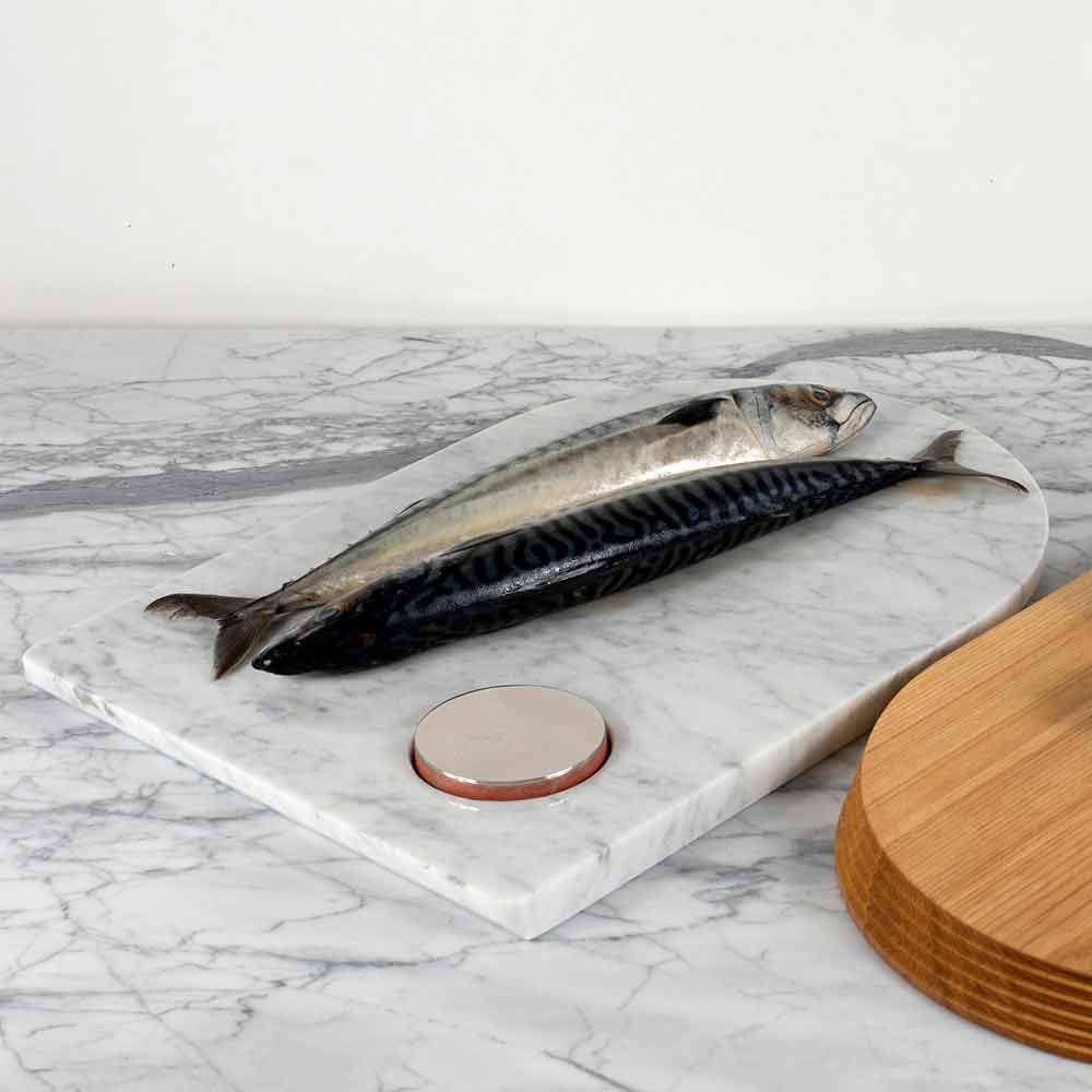 Tábua de cortar madeira, tábua de cortar mármore e sabonete removedor de odores de design de cozinha feito na Itália.