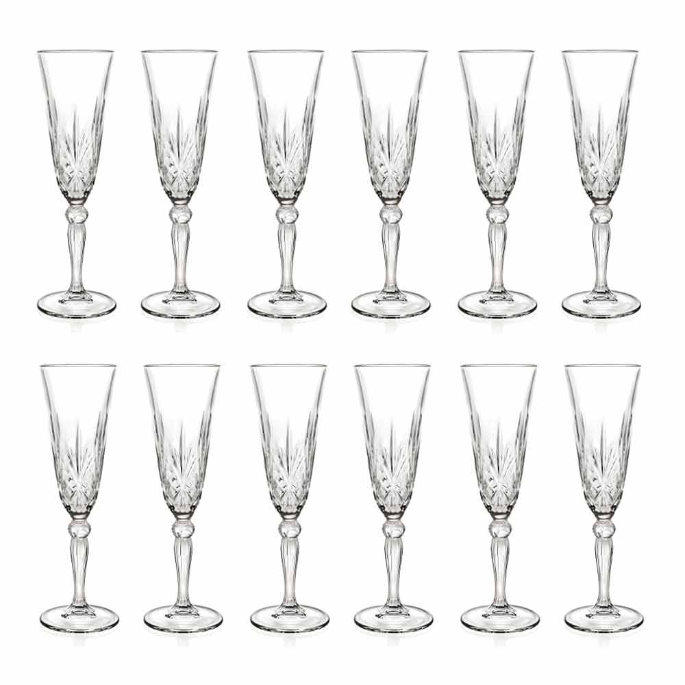 12 taças de flauta com design de cristal ecológico em estilo vintage de alta qualidade 100% made in Italy.