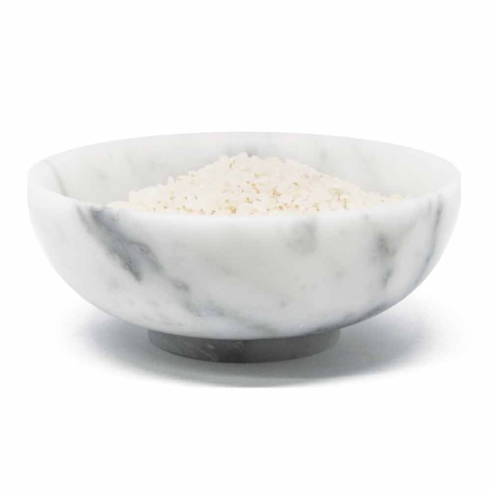 Taça redonda caracterizada pelo mármore de Carrara branco de alta qualidade utilizado para a sua realização. É uma peça única, pois cada bloco de mármore é diferente em veios e tonalidades. O mármore utilizado para a realização do produto provém da pedreira de Poggio Silvestre, fonte de mármore branco de primeira qualidade classificado desde o século passado.
