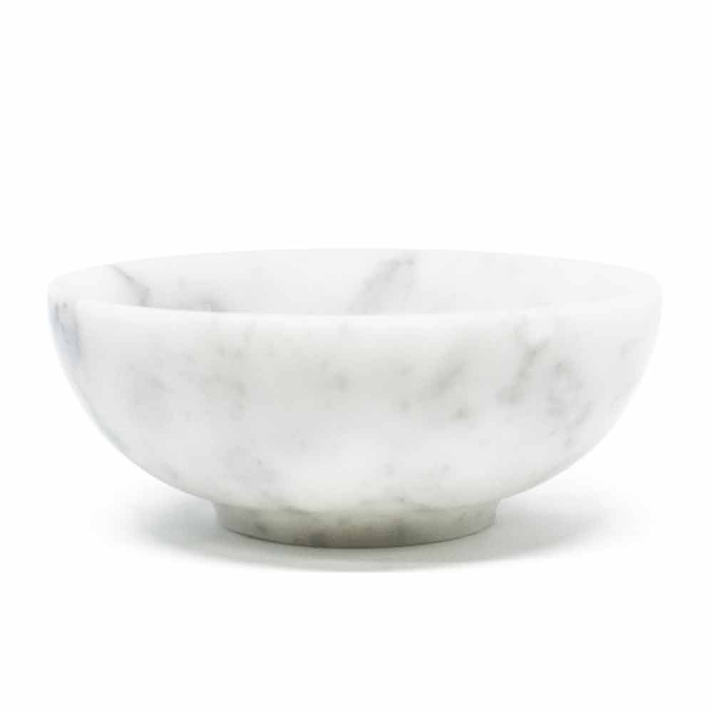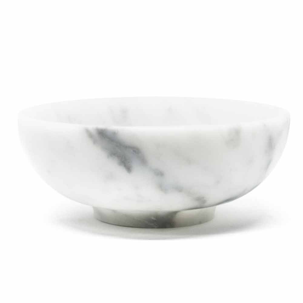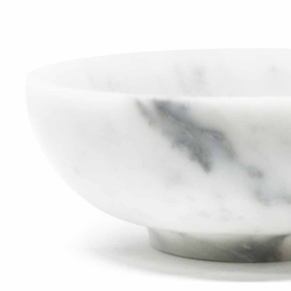Tigela redonda de design em mármore de Carrara branco acetinado Made in Italy.