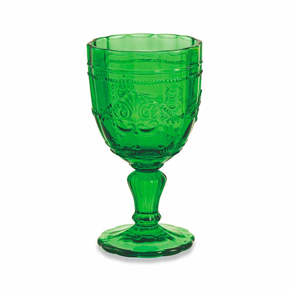 Taças de vinho coloridas feitas de vidro de diferentes cores e decorações arabescas, 12 peças.