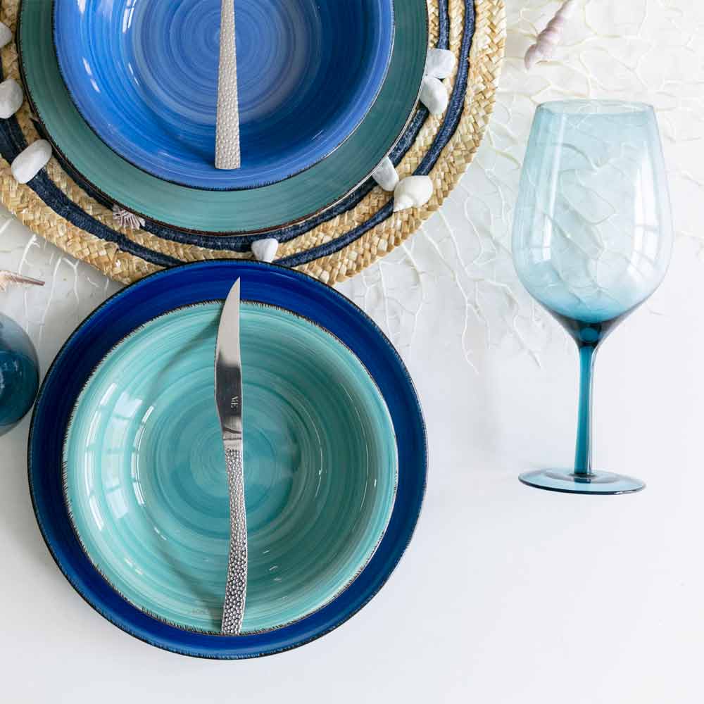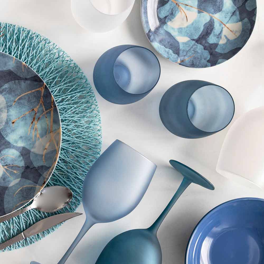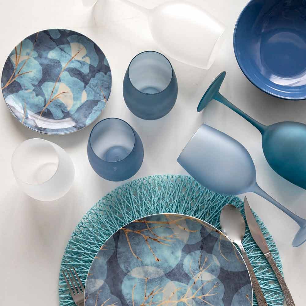 Esta linha de taças de vinho leva- nos a uma viagem que dos tons de azul nos leva aos tons de verde água, encontrando a agradável neutralidade do branco, criando um ambiente intemporal, requintado e requintado . O copo fino garante praticidade e o fundo arejado valoriza a bebida.