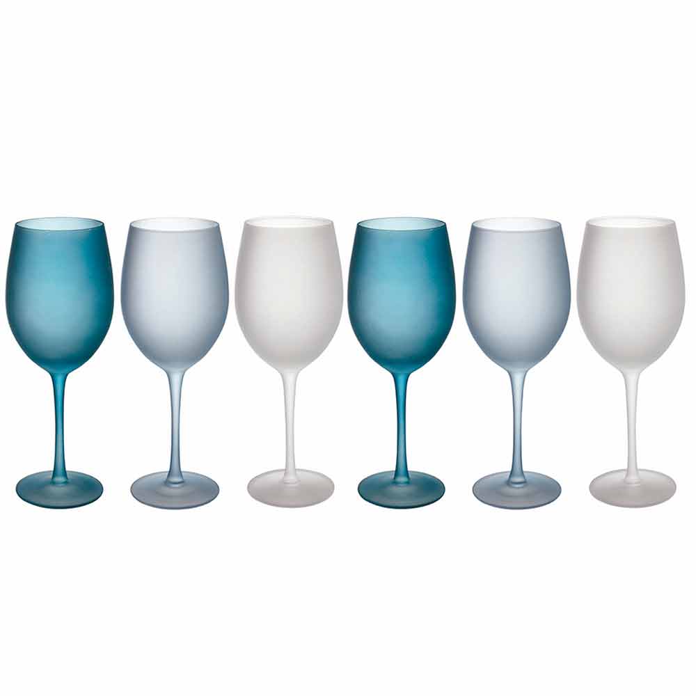 Conjunto de taças de vinho coloridas em vidro fosco, 12 peças.