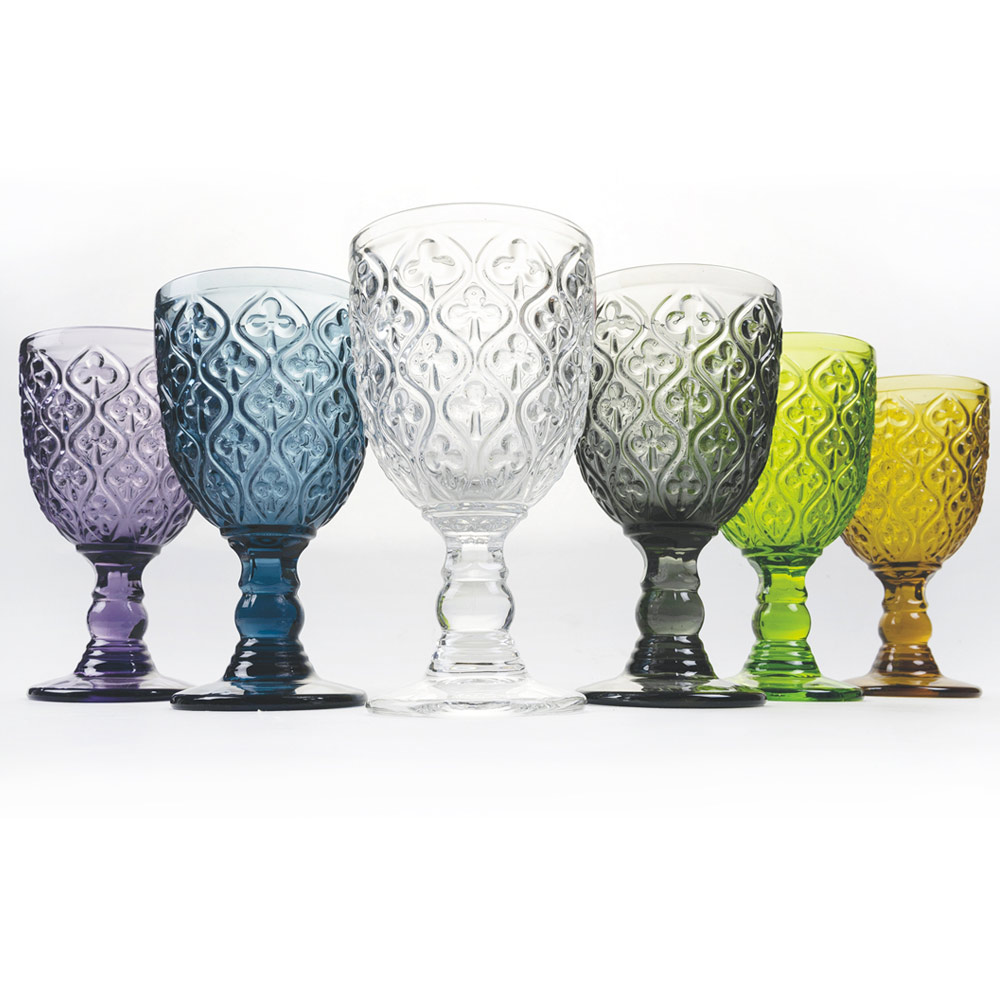 Taças de vinho em vidro colorido com decoração na superfície, 12 peças.