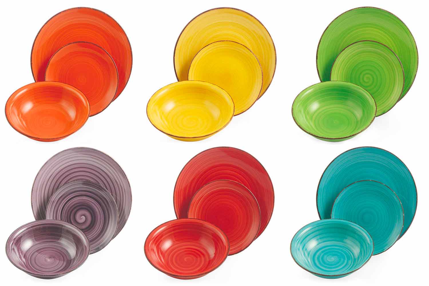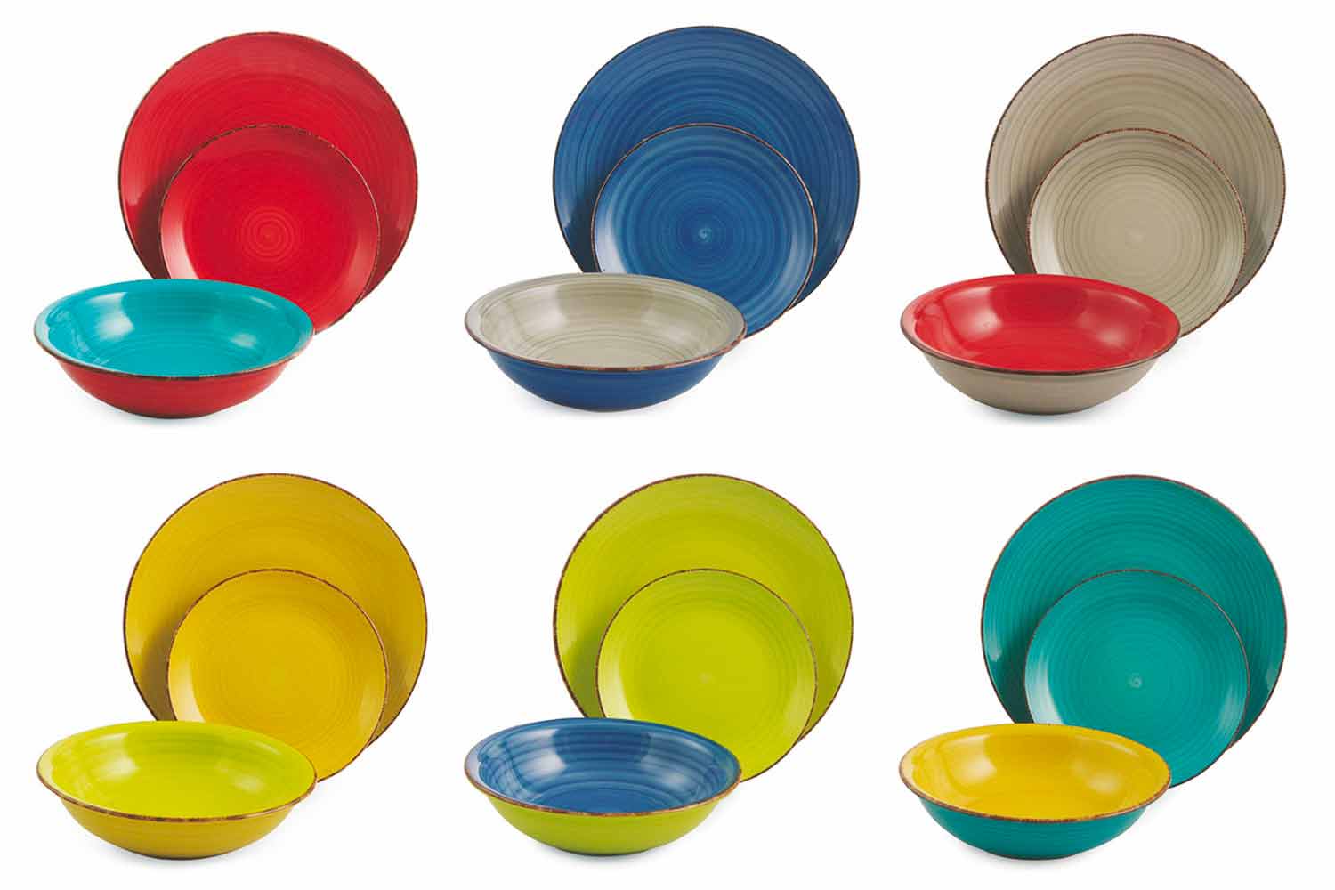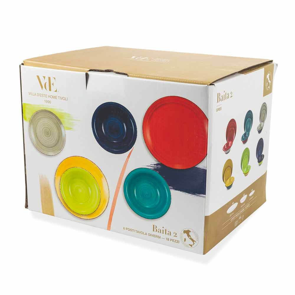 Conjunto de pratos coloridos para talheres em 18 peças.