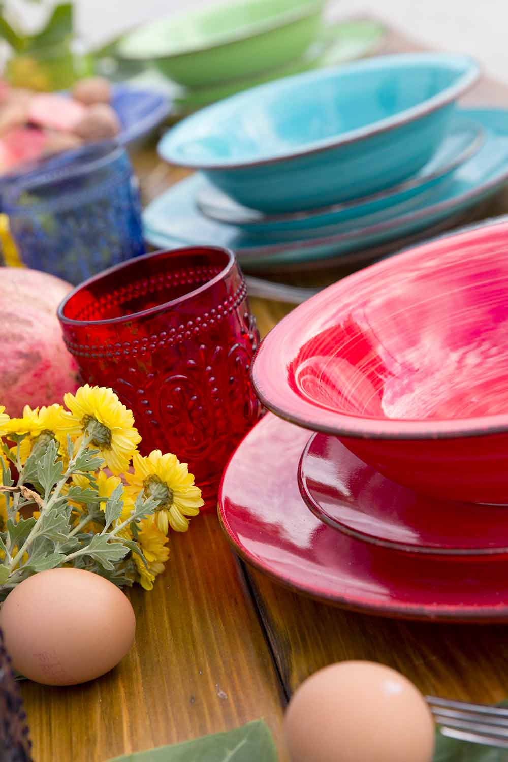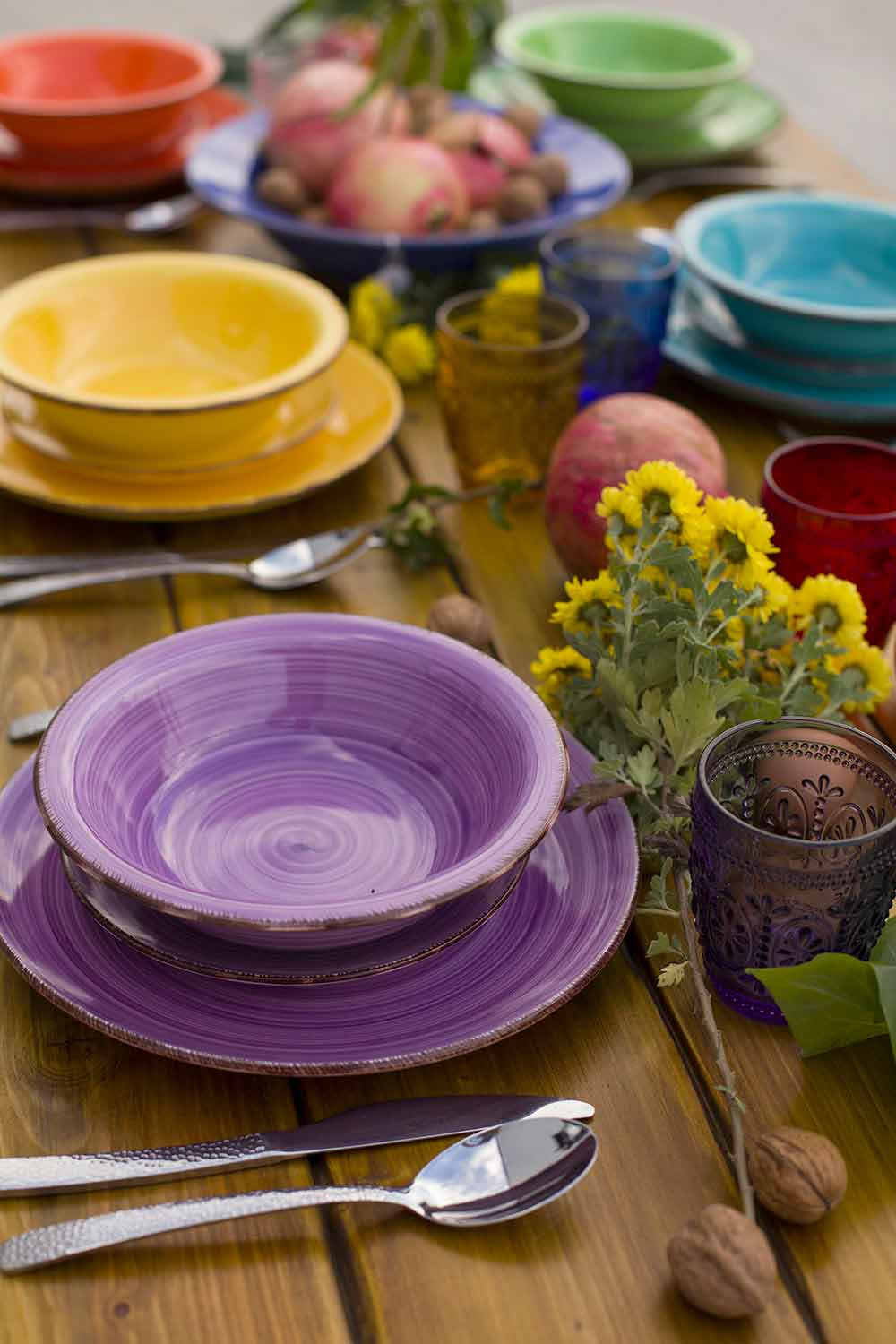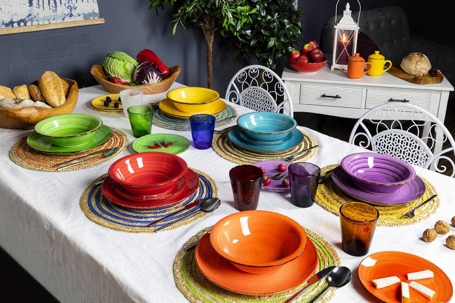 Conjunto de pratos coloridos para talheres em 18 peças.