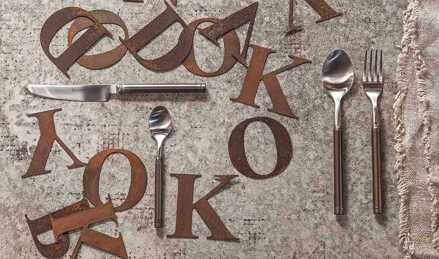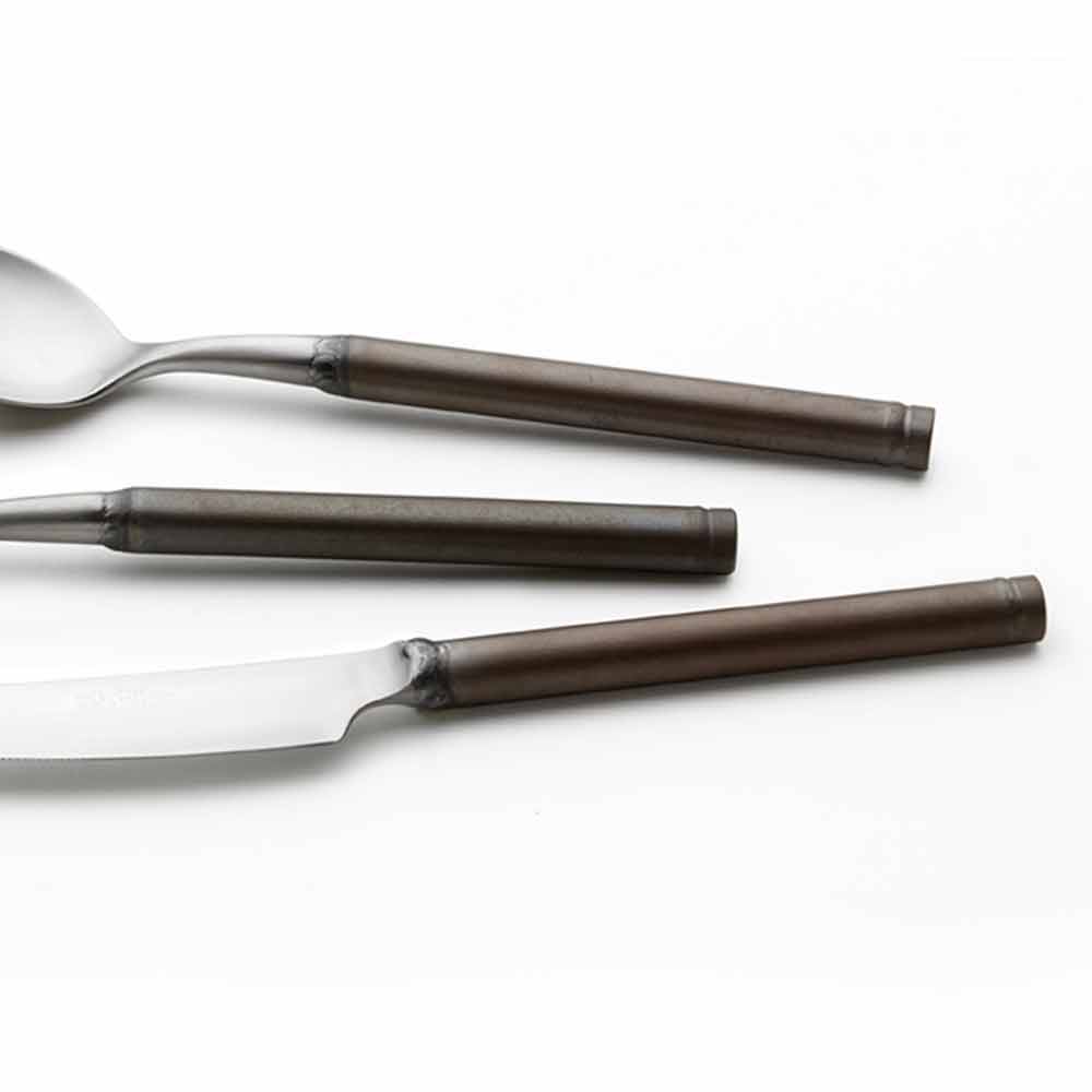 soldadura manual entre o cabo e os talheres, que artesãos experientes realizam em cada produto e que ficam expostos para valorizar o trabalho