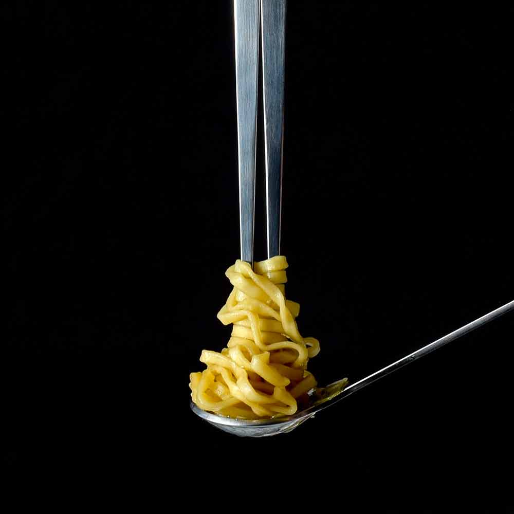 acessório varinha-garfo múltiplo que se obtém simplesmente inserindo 3 elásticos na parte superior para que, desde utensílios próprios para comer comida oriental como o sushi, obtenha um utensílio ideal para mais Pratos ocidentais como massas.