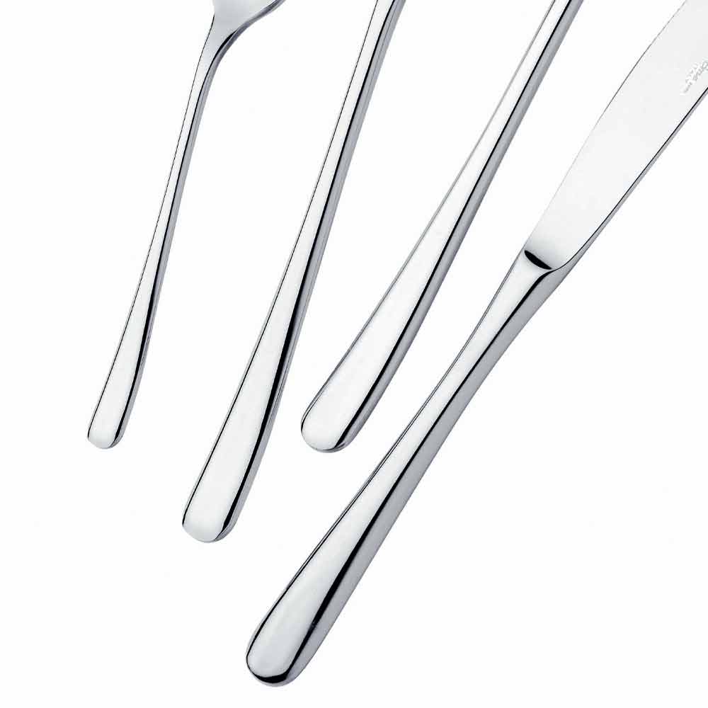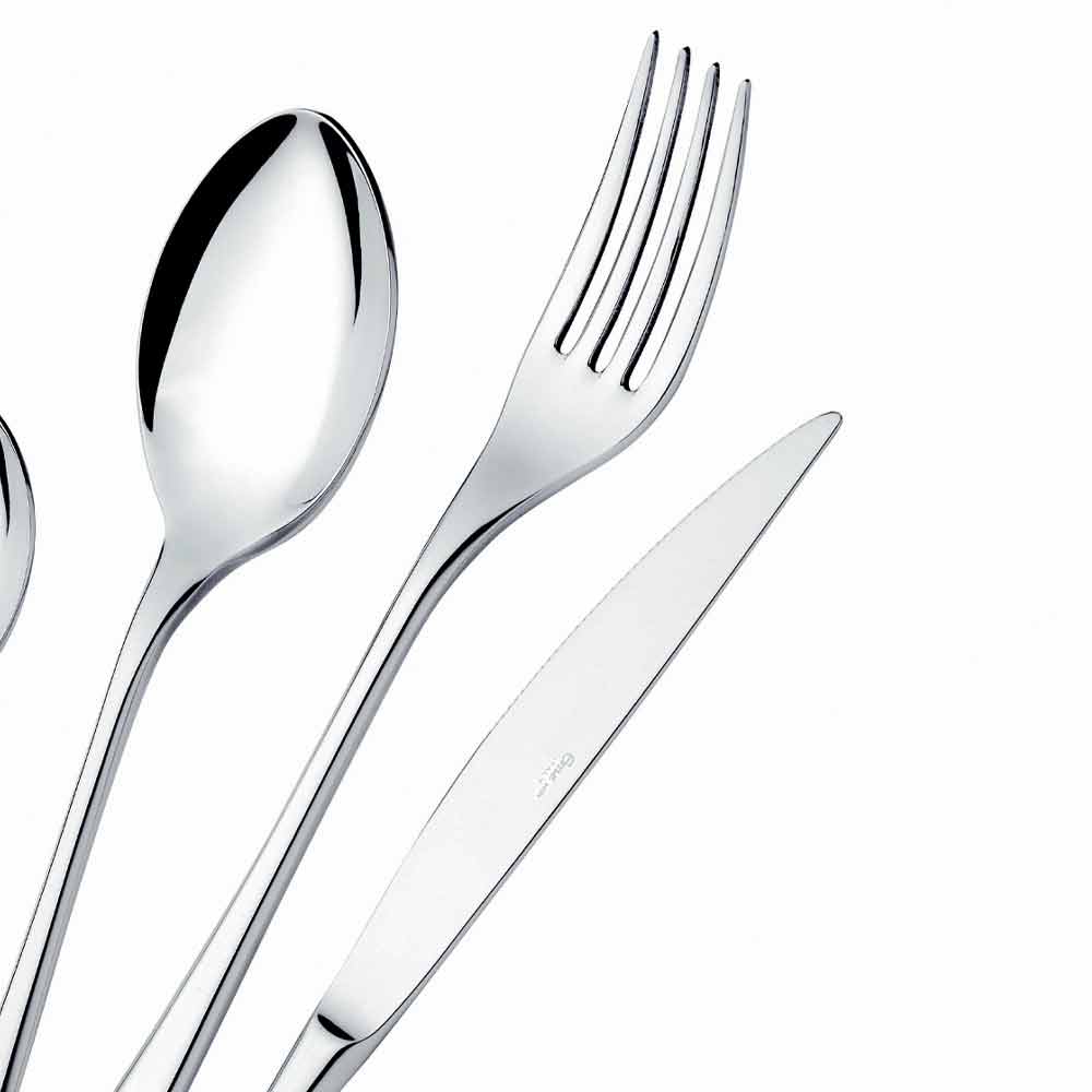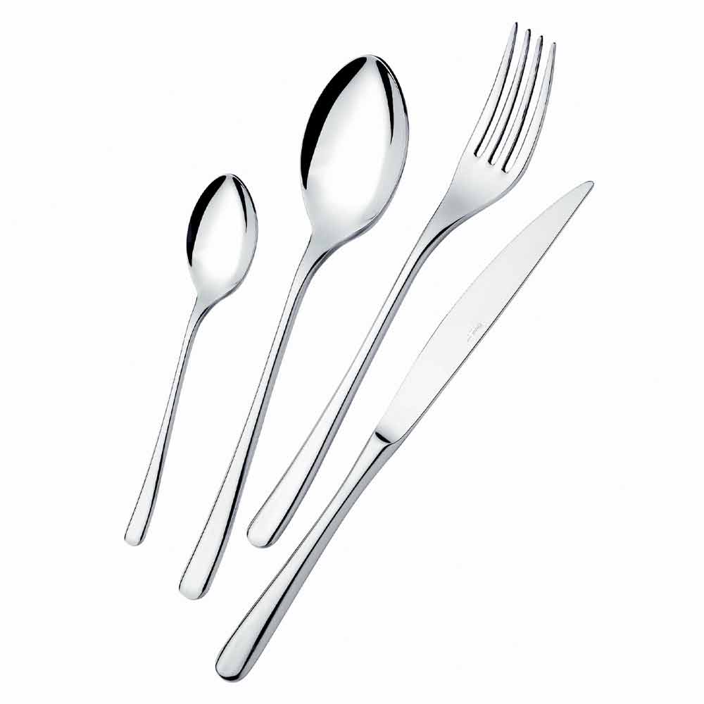 24 talheres de aço inoxidável de design moderno com acabamento brilhante, fabricados na Itália.