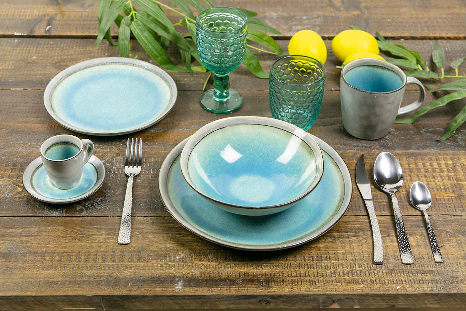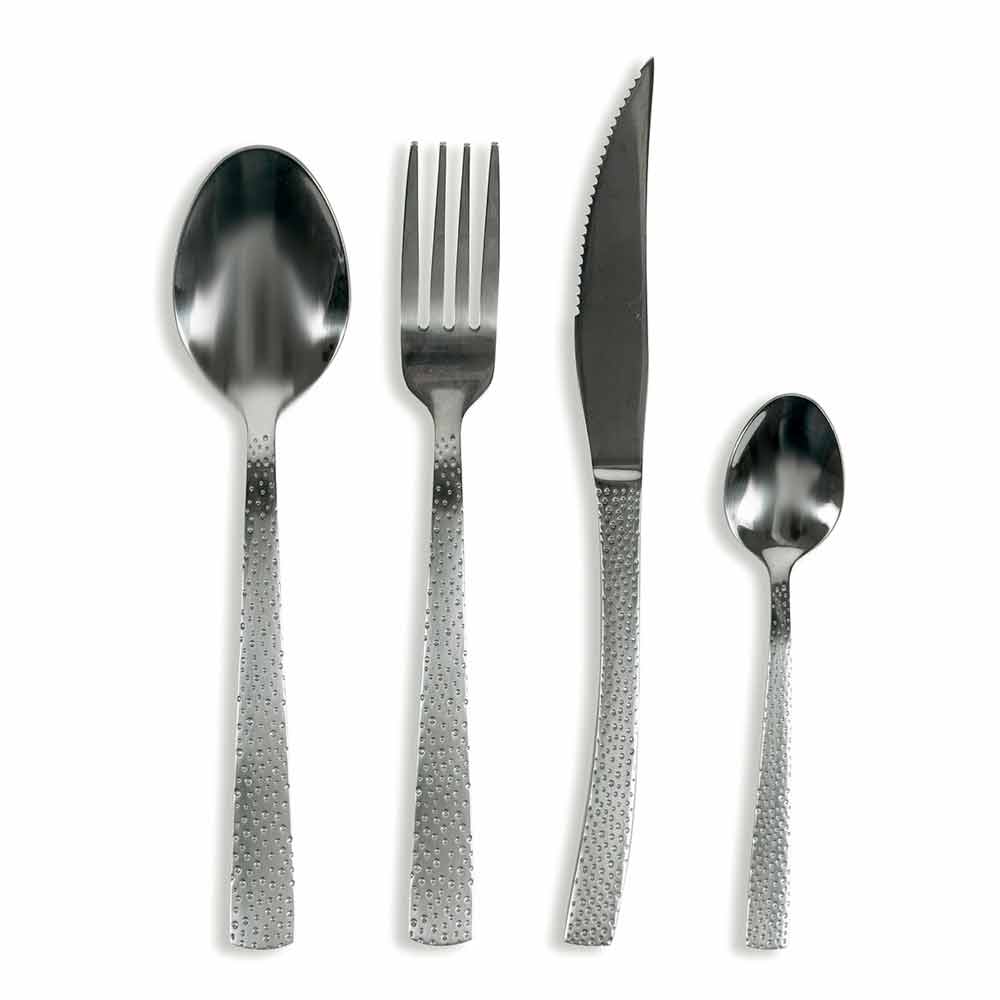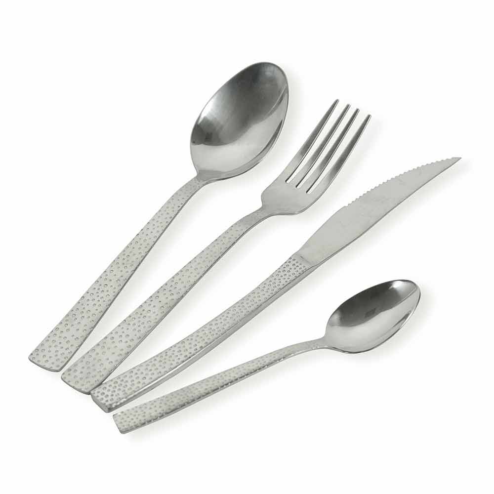 | Dimensões | Garfo: l. 2,5 x p. 2 x h. Colher de 20 cm: l. 4,2 x p. 2,5 x h. Faca de 20 cm: l. 2 x p. 0,5 x h. Colher de chá de 21 cm: l. 3 x p. 1 x h. 14,3 cm |