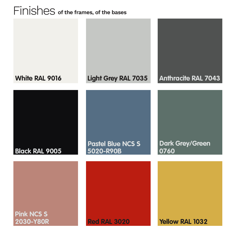 NB : a estrutura e o assento estão disponíveis numa vasta gama de cores e acabamentos. O banco também está disponível com uma altura de 91 cm.
