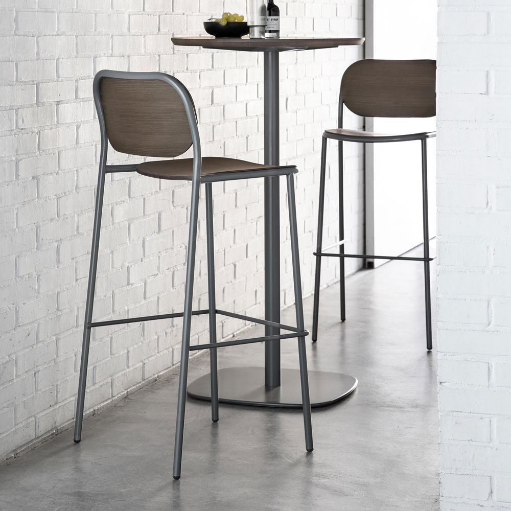 Banco de cozinha empilhável em madeira e metal Fabricado na Itália, 2 peças.