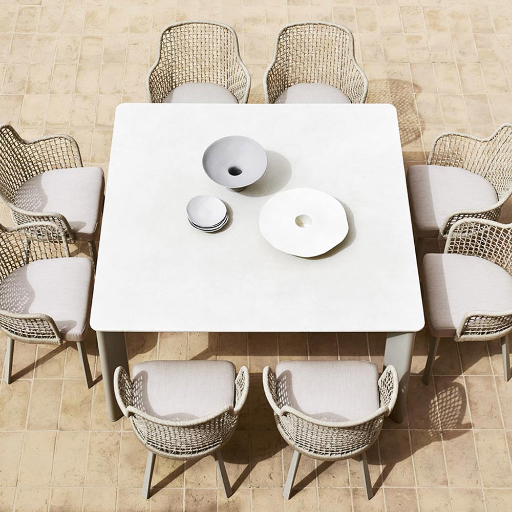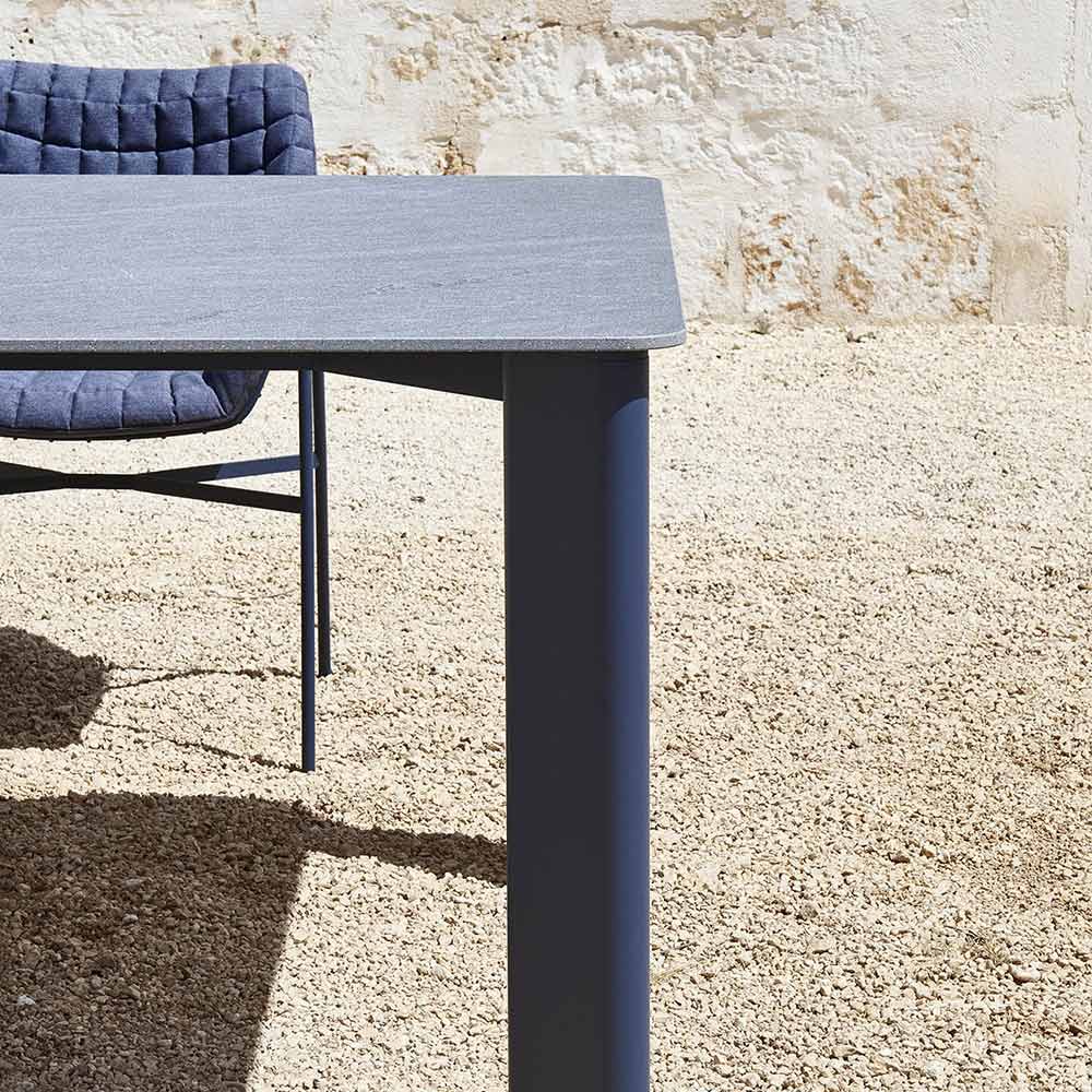 Mesa de jardim de alumínio com tampo de cerâmica hpl ou bujardado Fabricado na Itália.