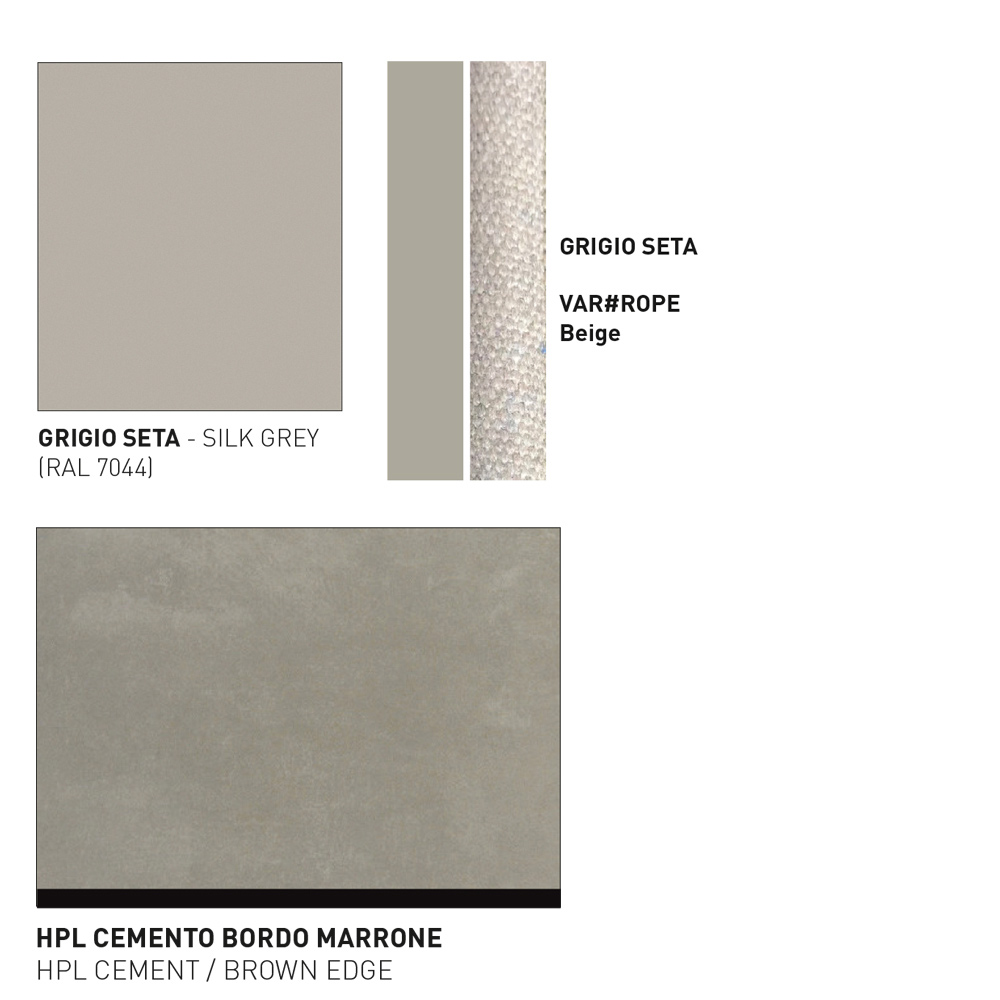 Acabamentos disponíveis:- perna cinza seda, bege VAR # tecelagem ROPE, top concreto hpl;