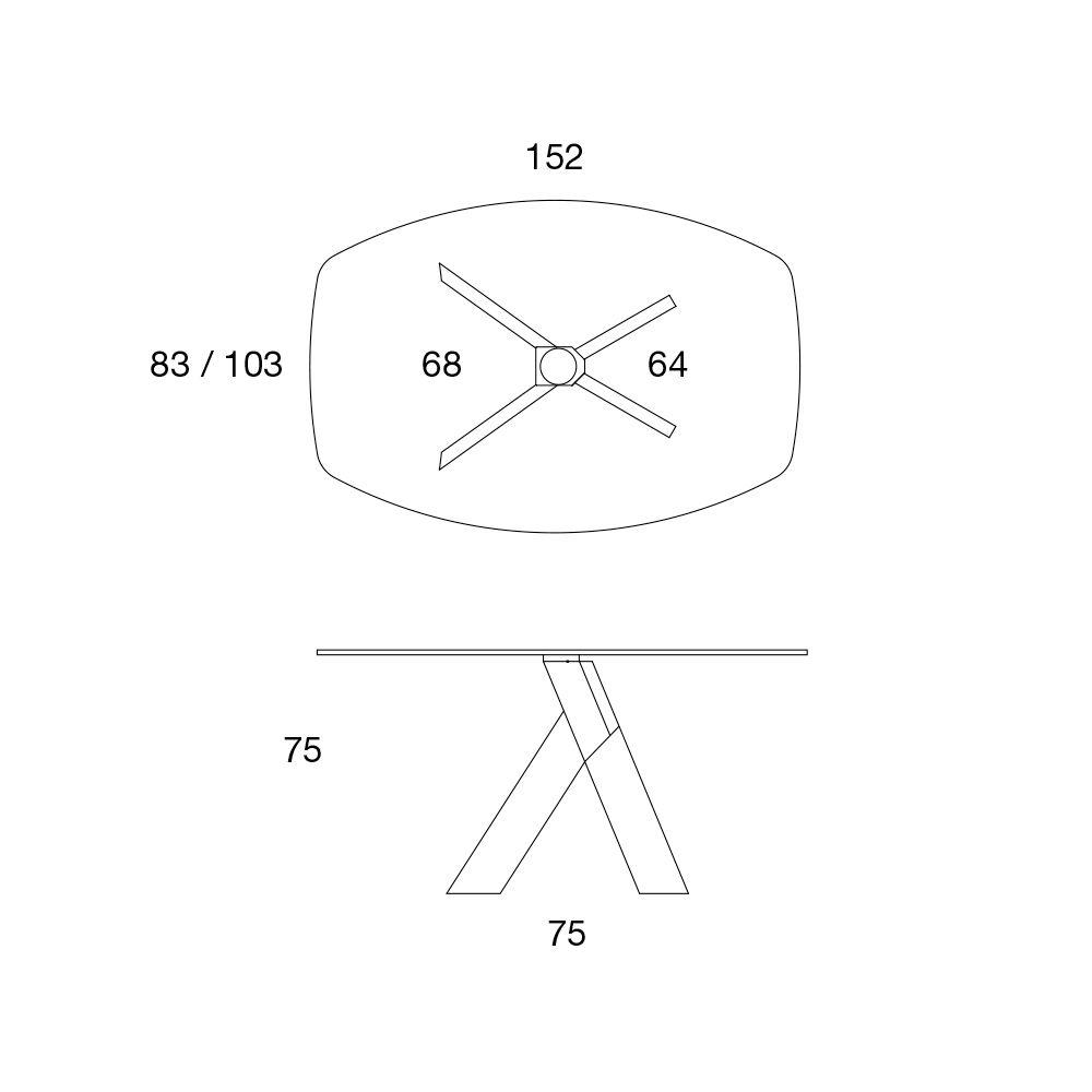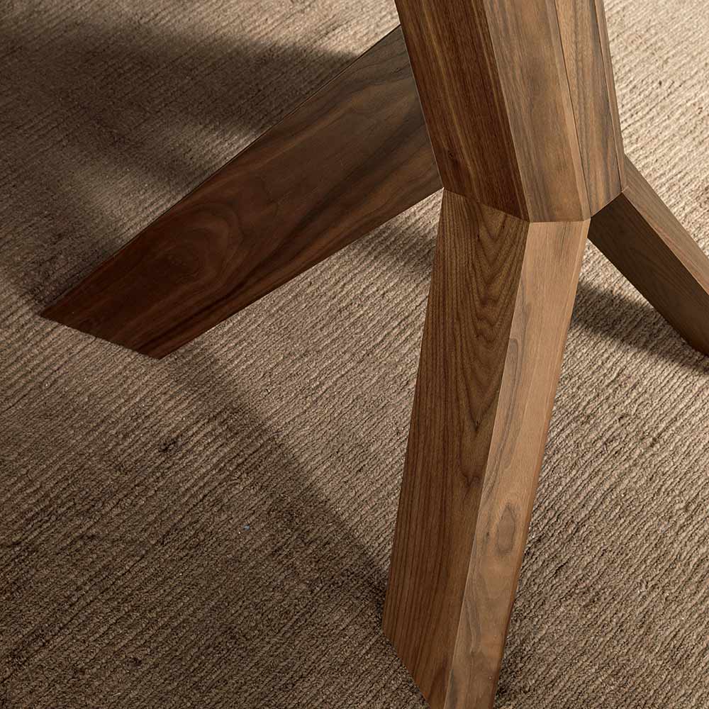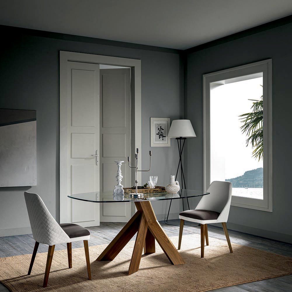 Mesa de jantar em vidro e pés em madeira folheada made in Italy.