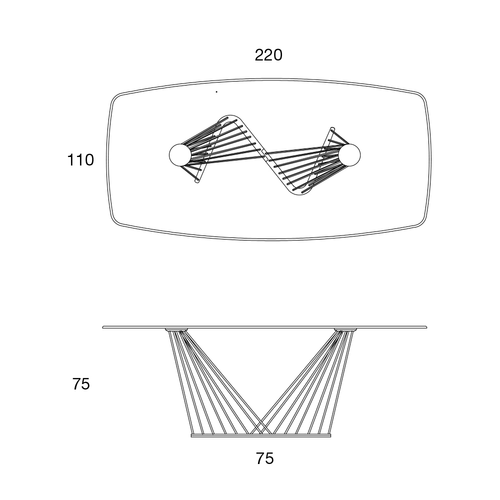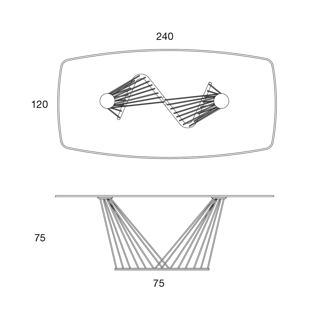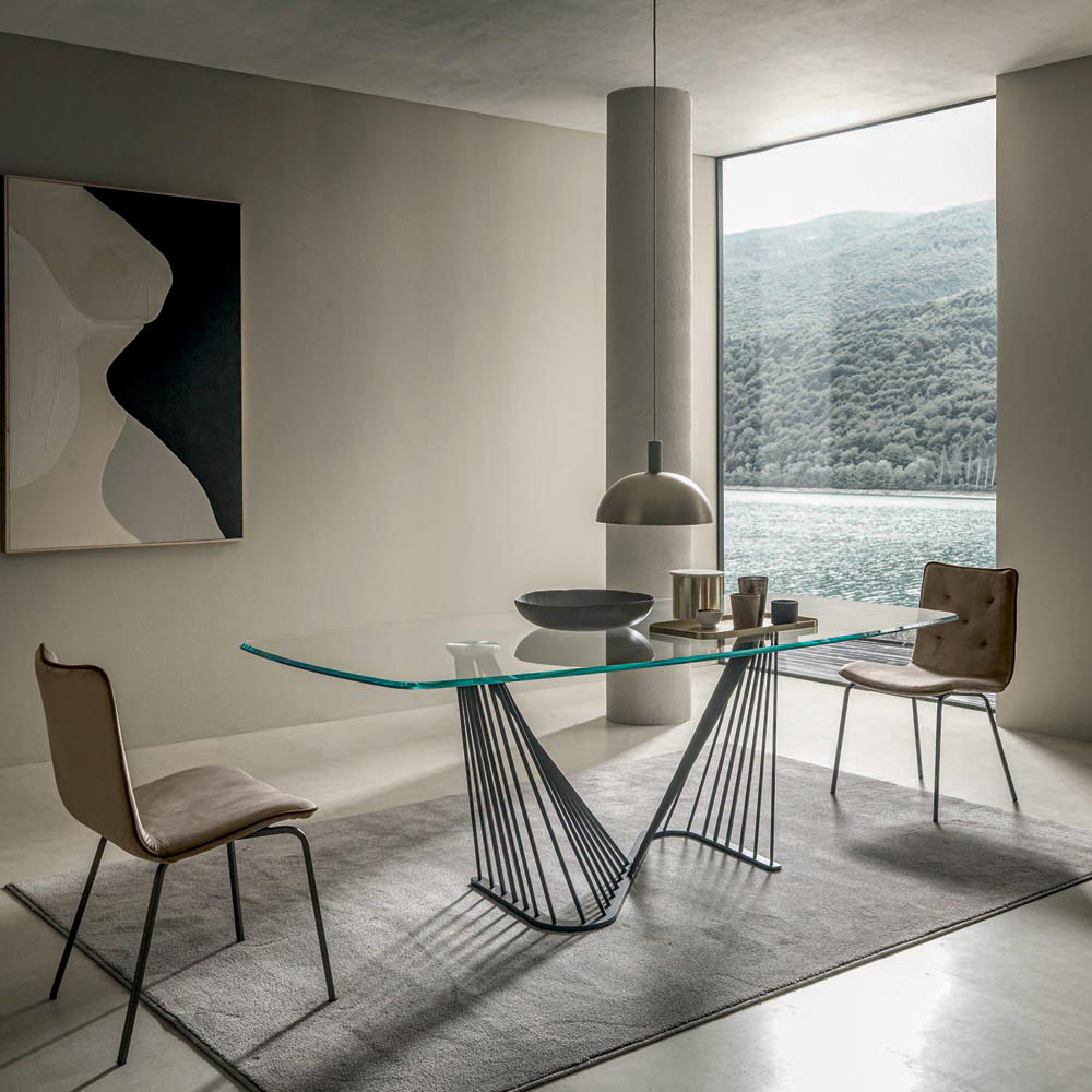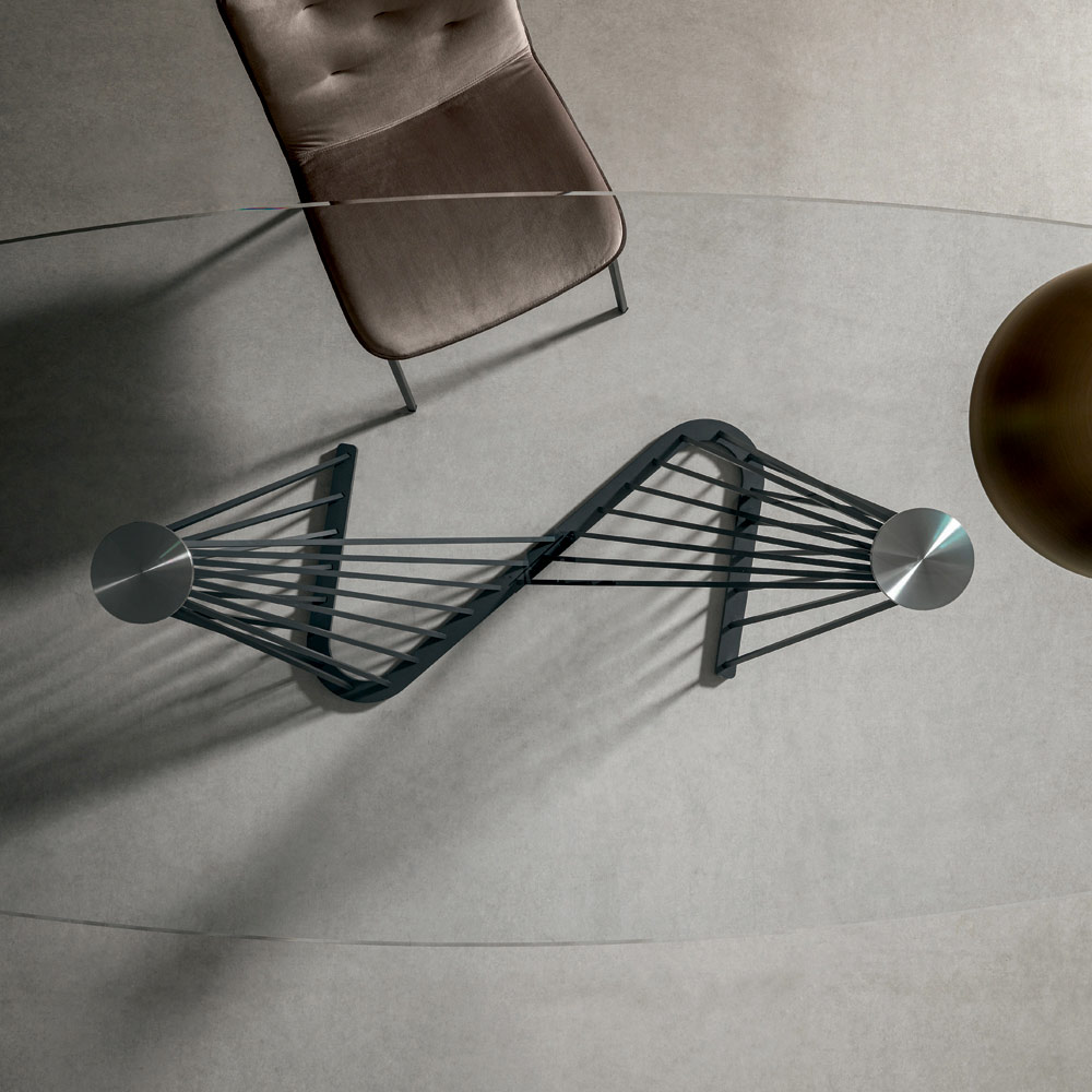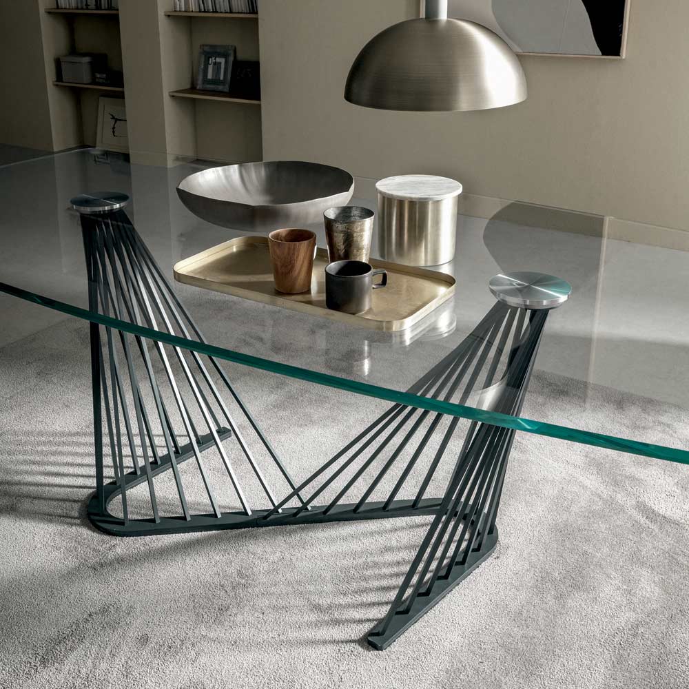 Mesa de jantar em vidro transparente e base com cordas de metal, 2 tamanhos made in Italy.