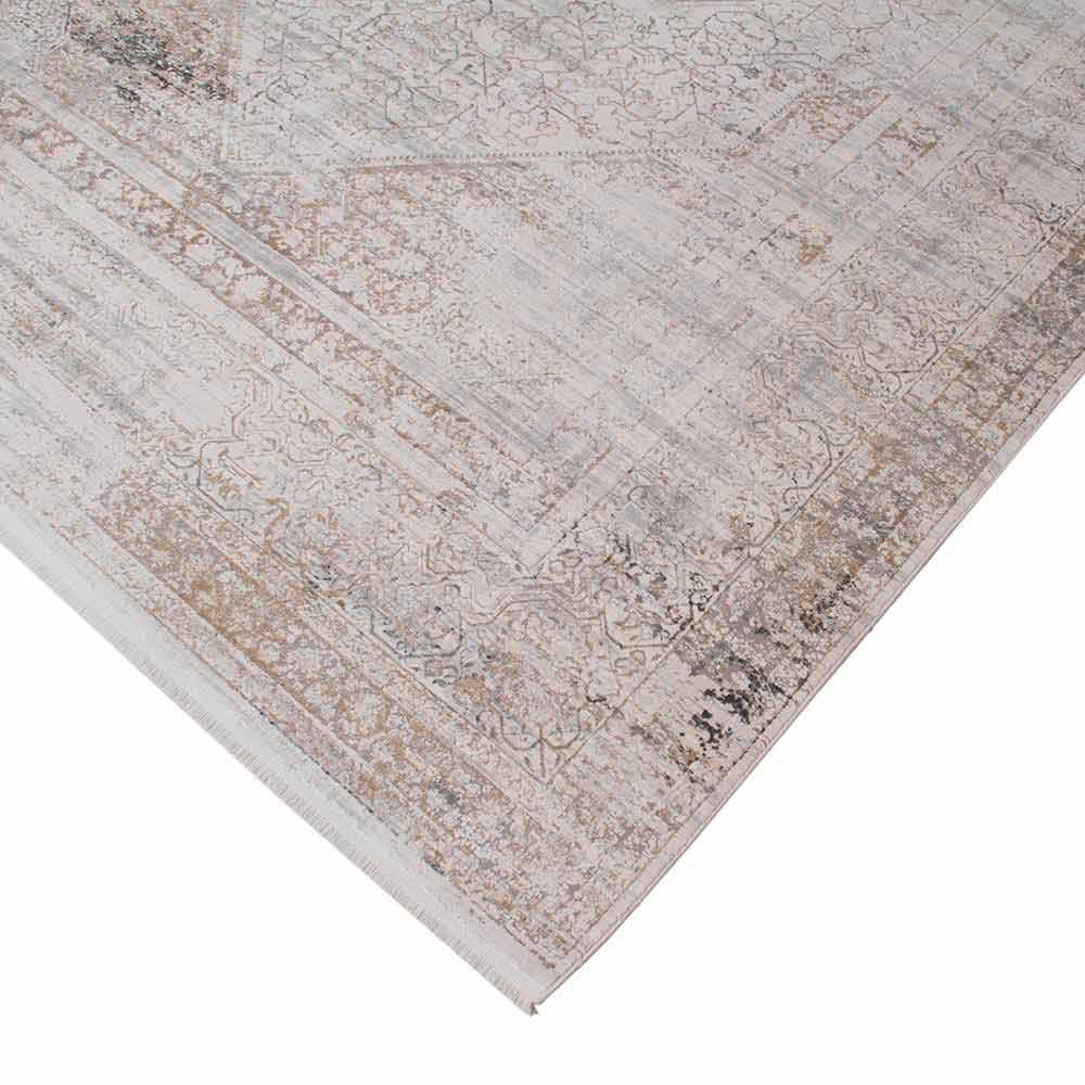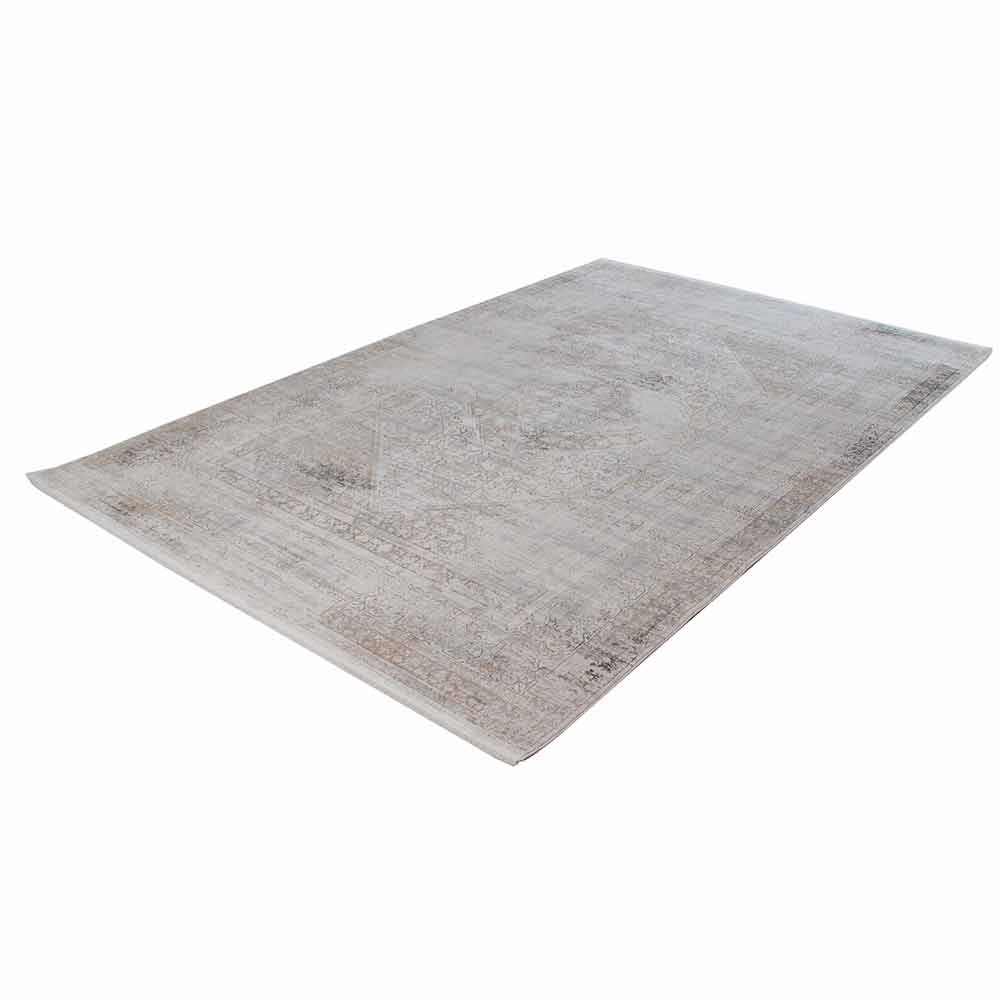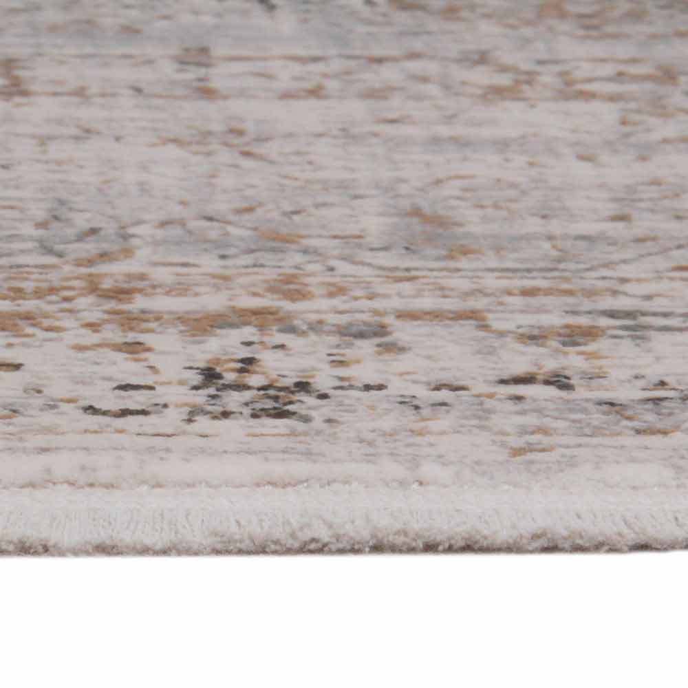 Tapete antiderrapante de design vintage com decoração disponível em duas dimensões em acrílico cinza / bege e viscose.