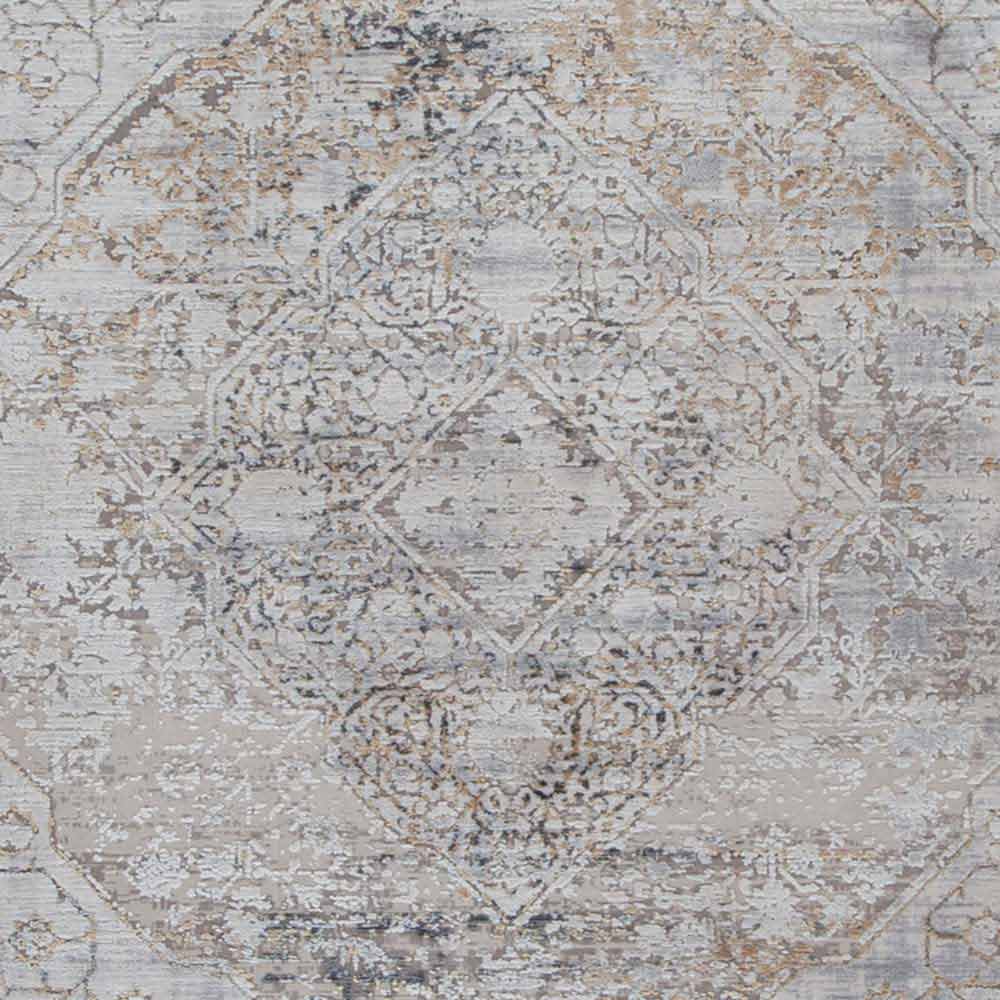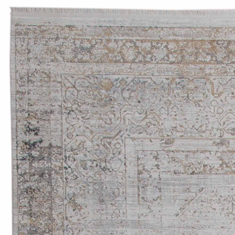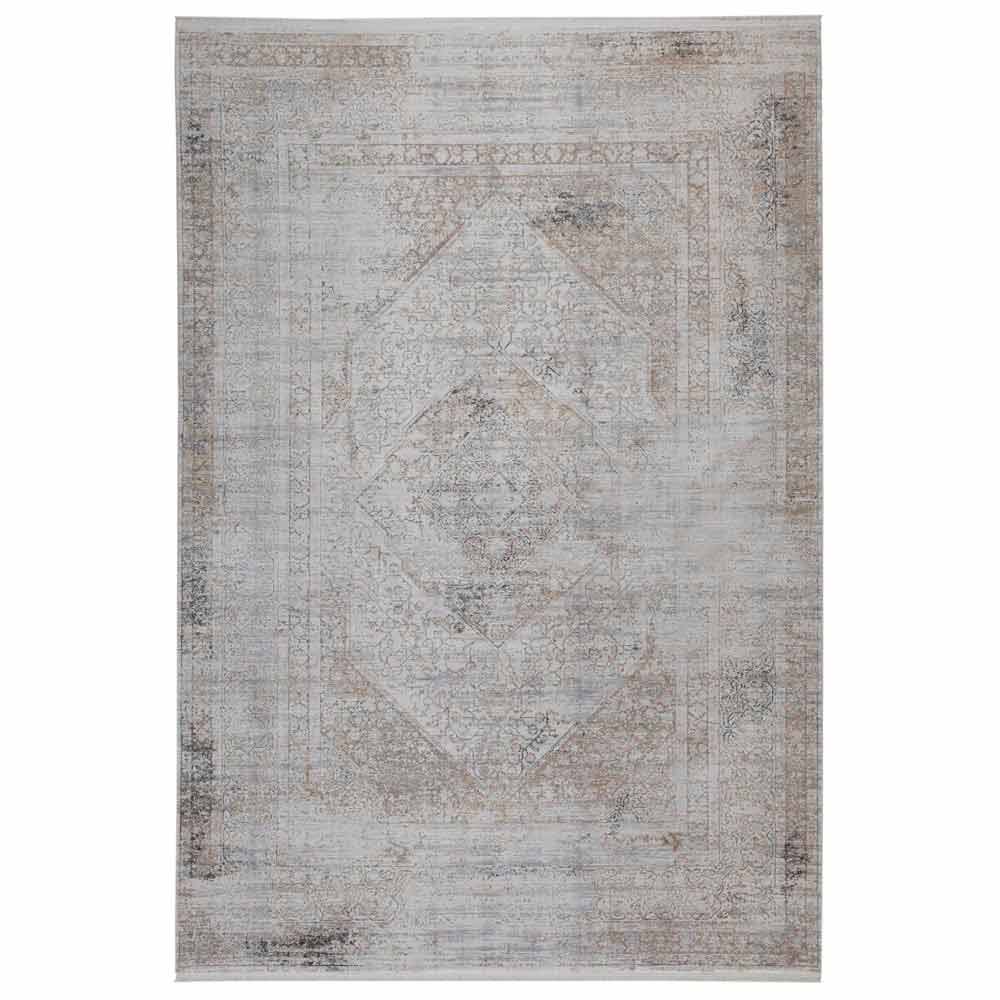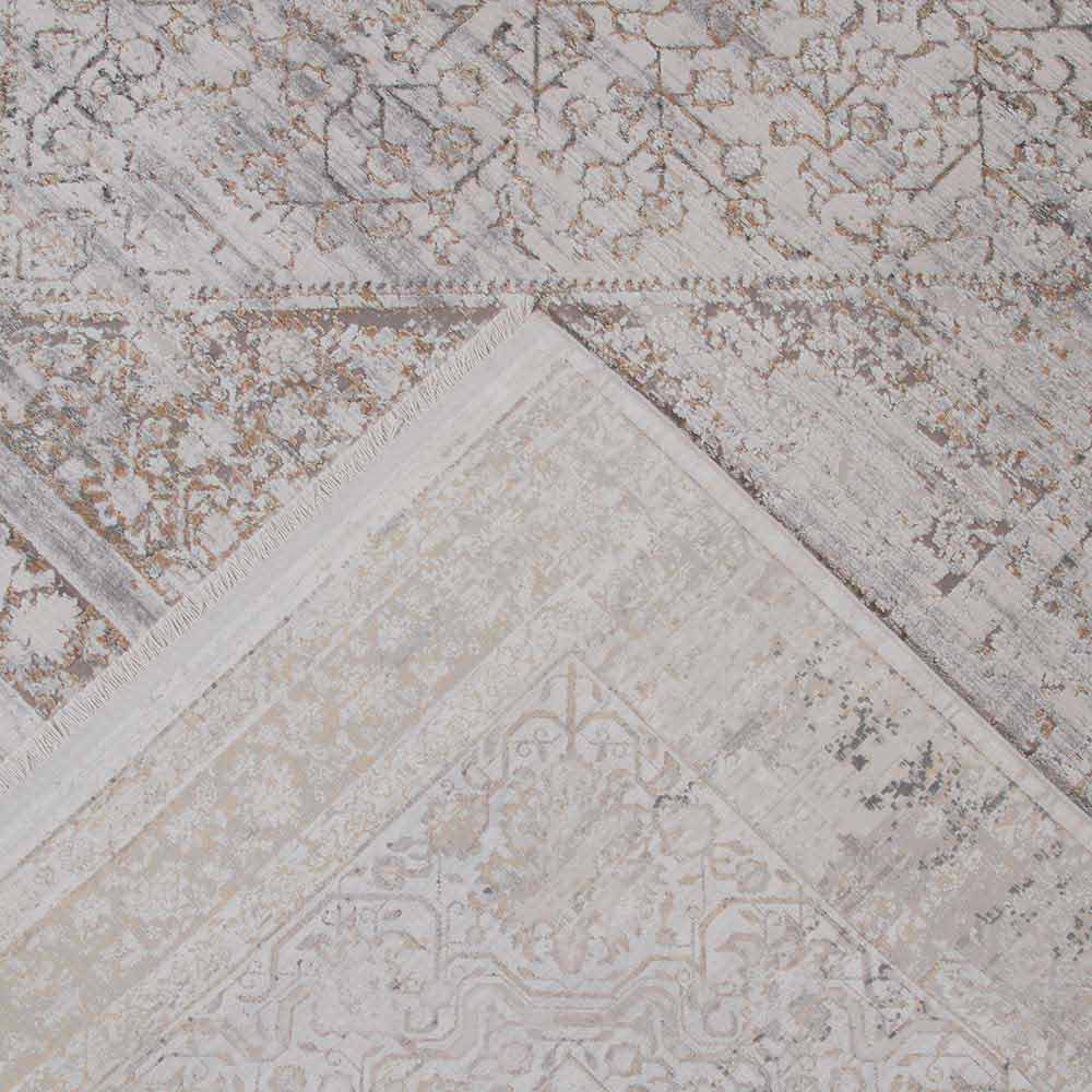 Tapete antiderrapante de design vintage com decoração disponível em duas dimensões em acrílico cinza / bege e viscose.