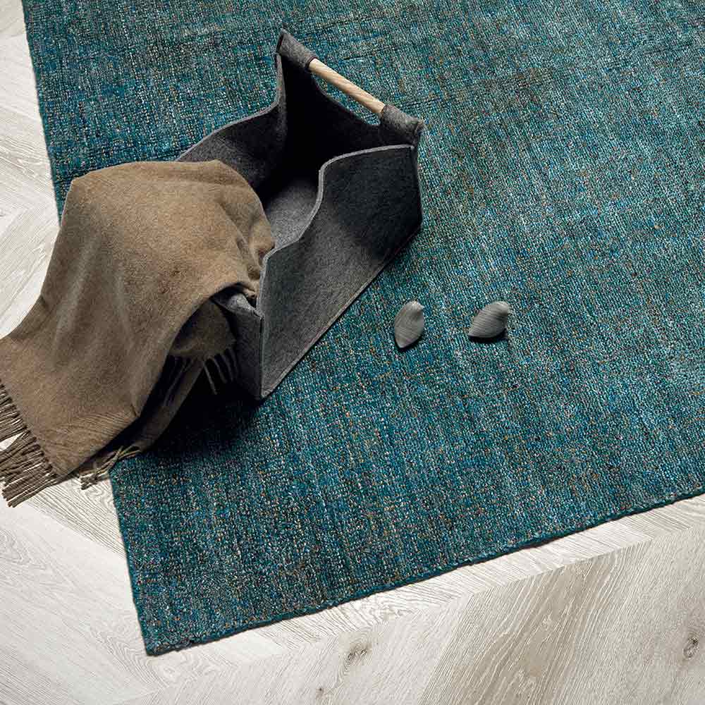 Tapete moderno da sala feito em tear manual em viscose, lã e algodão.
