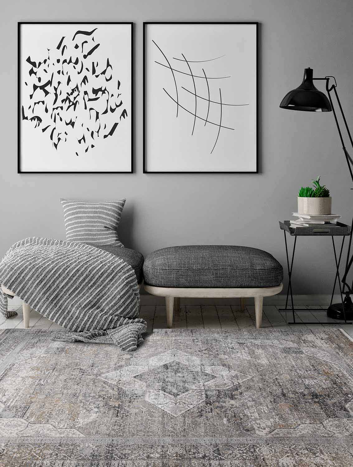 Tapete de design vintage com decoração em duas dimensões em acrílico cinza / bege e viscose, não flip.