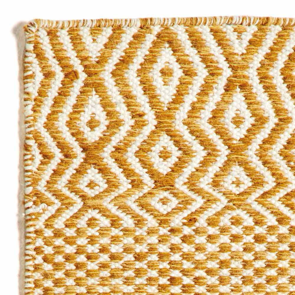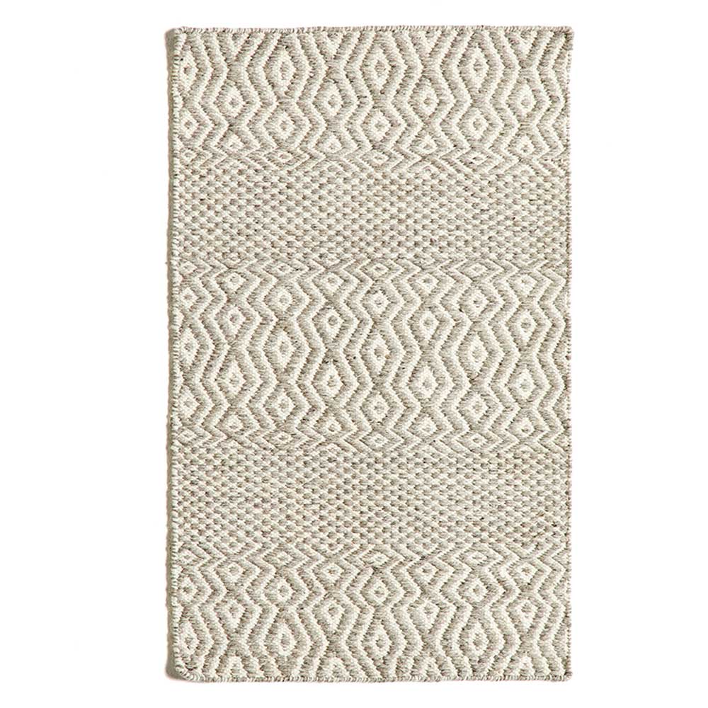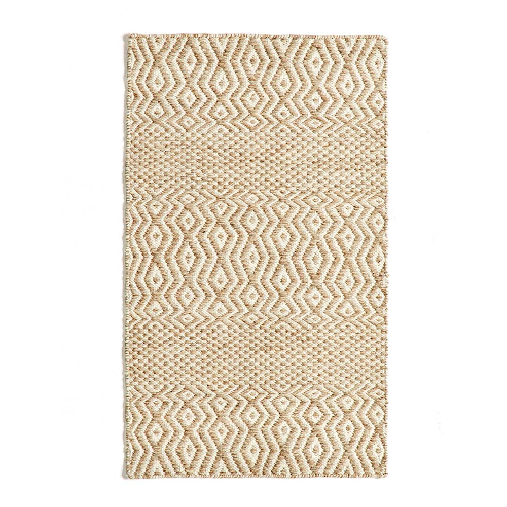 Tapete de sala tecido à mão em lã e algodão com desenho estampado.