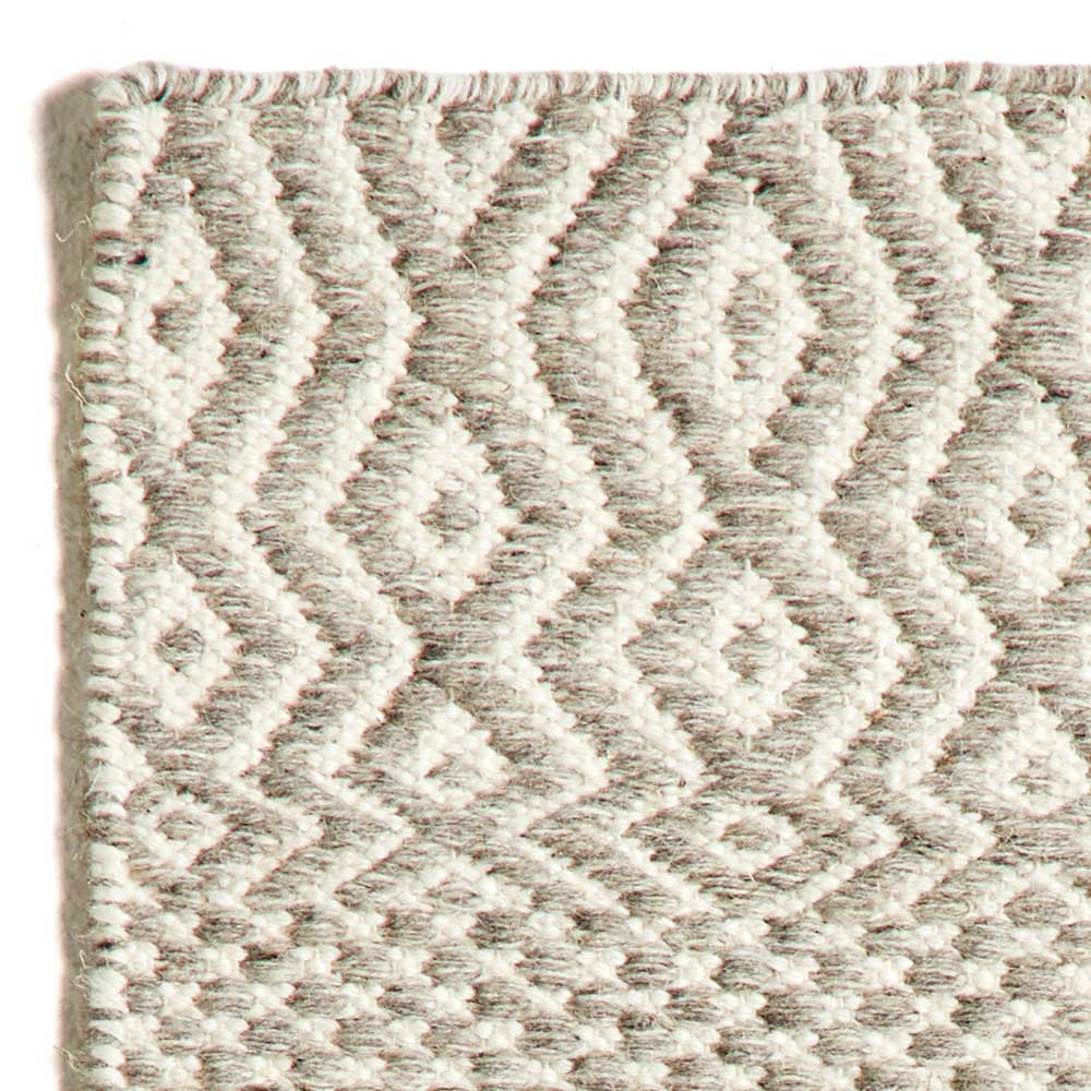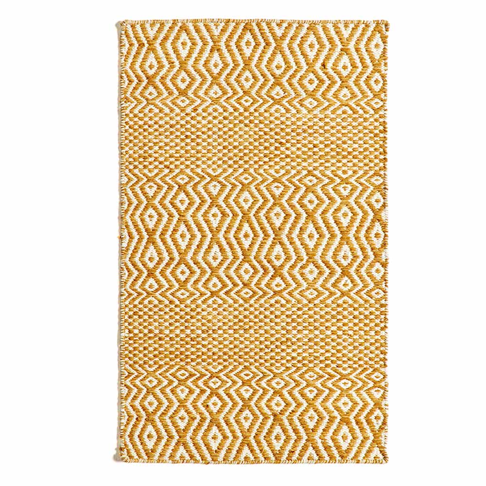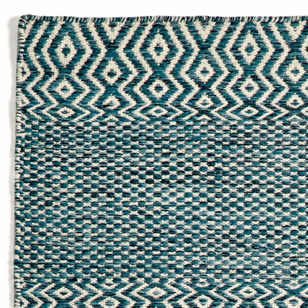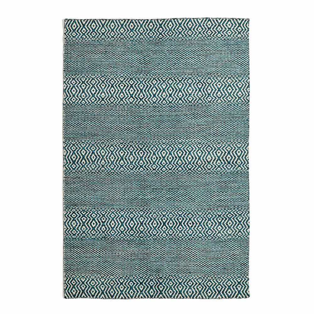 Tapete de sala tecido à mão em lã e algodão com desenho estampado.