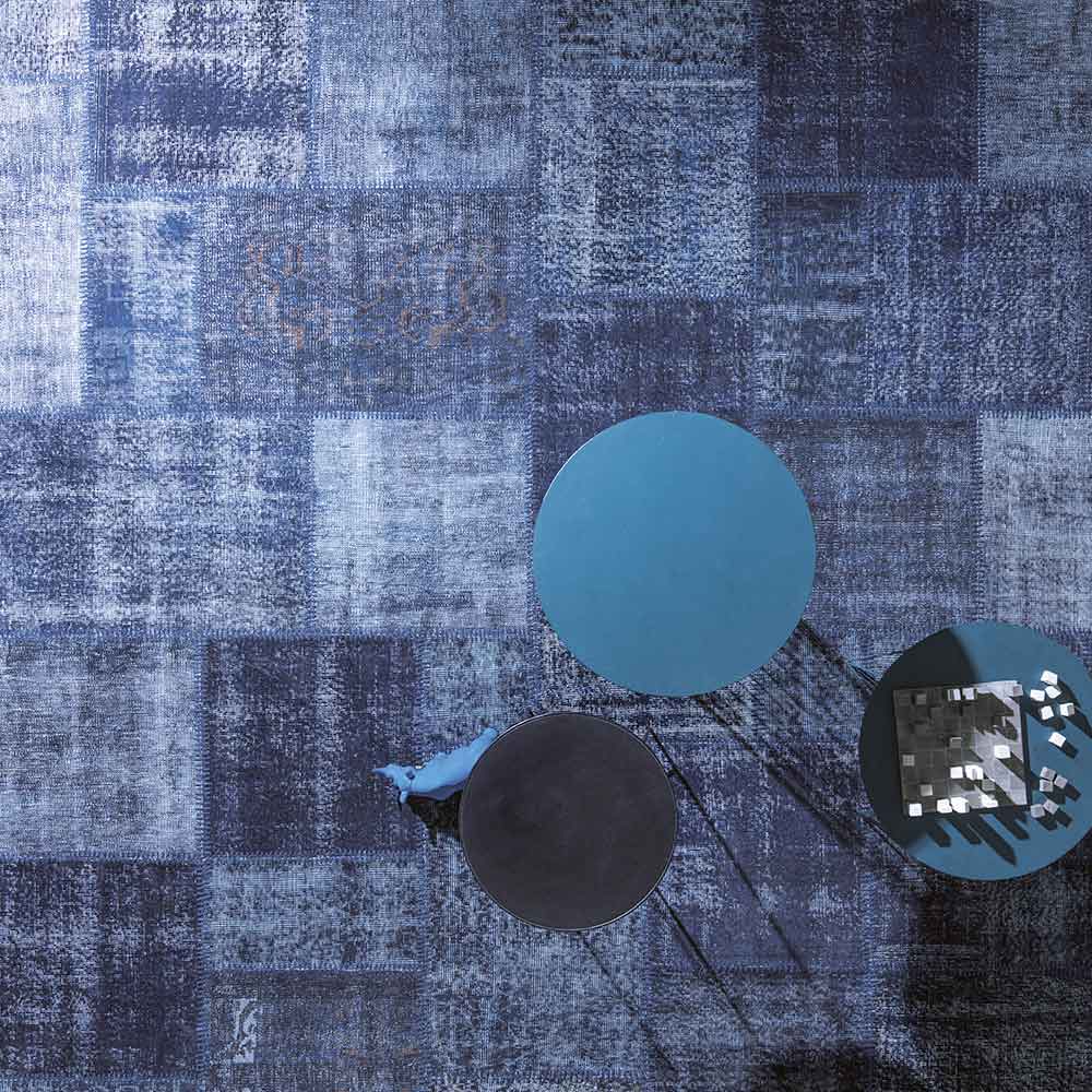 A peculiaridade deste tapete é dada pelo processo de patchwork, pelo qual os antigos tapetes da Anatólia são primeiro branqueados e tingidos, depois cortados em quadrados de diferentes formas e cores e depois costurados à mão.