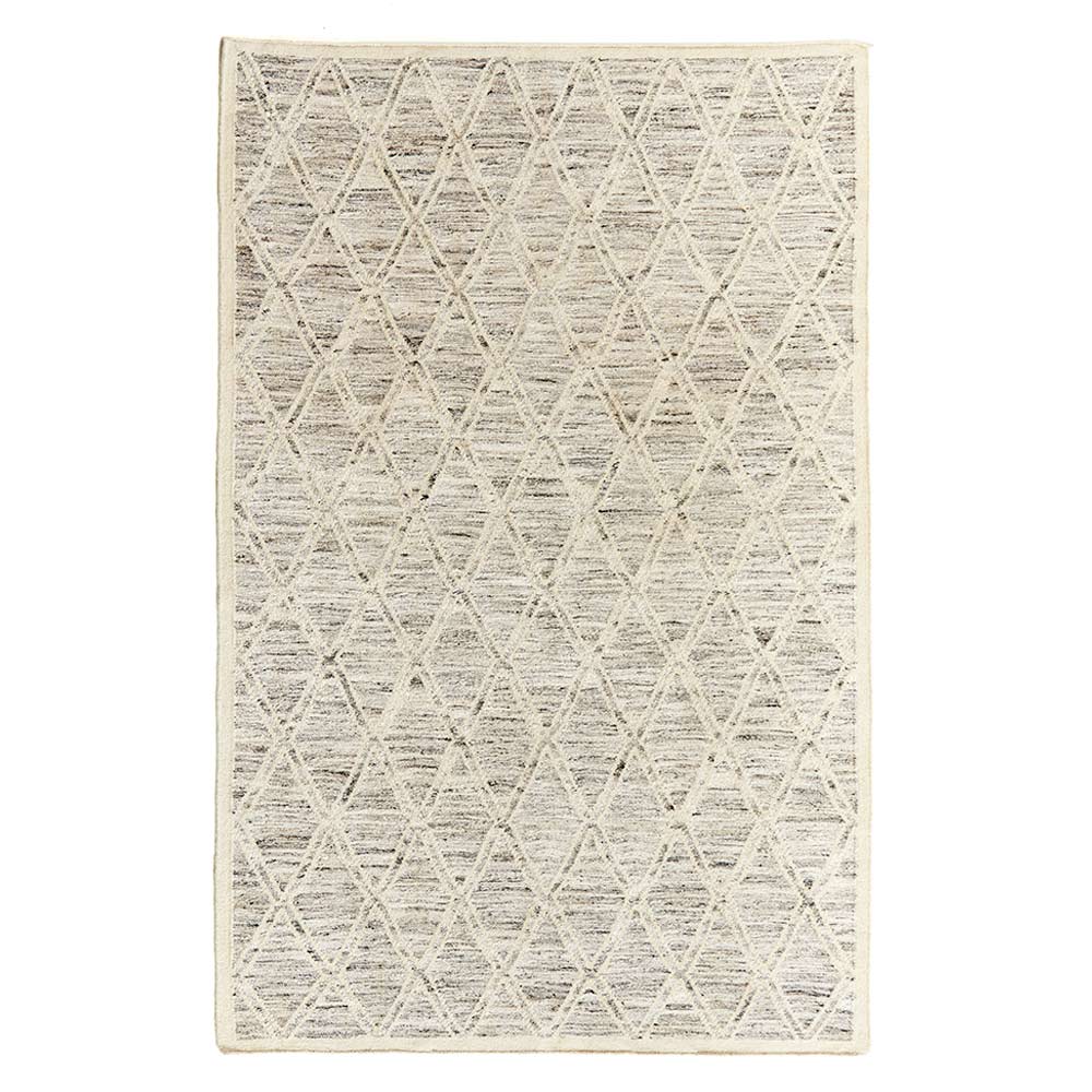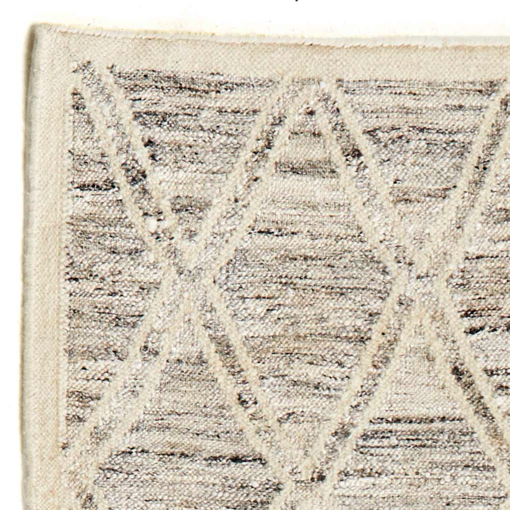 Tapete de design moderno em lã e algodão com motivos geométricos.
