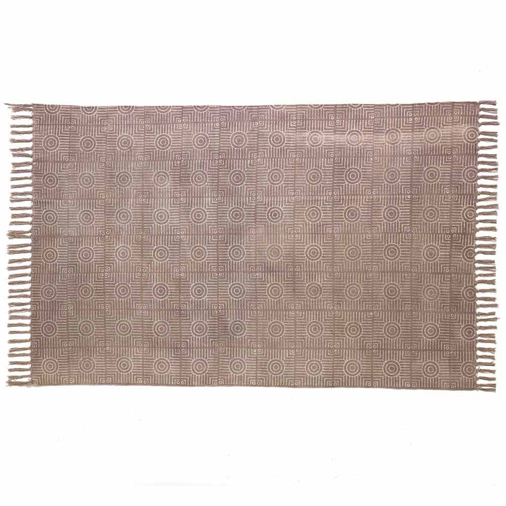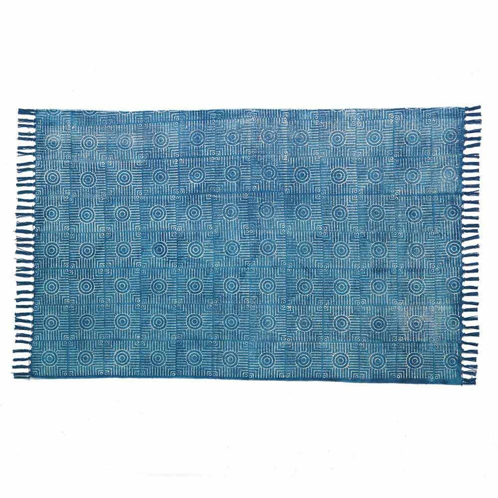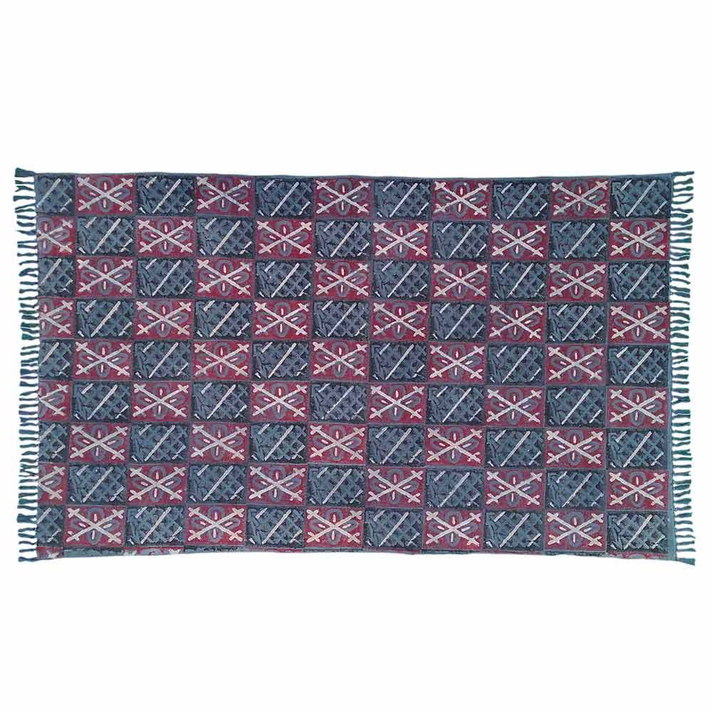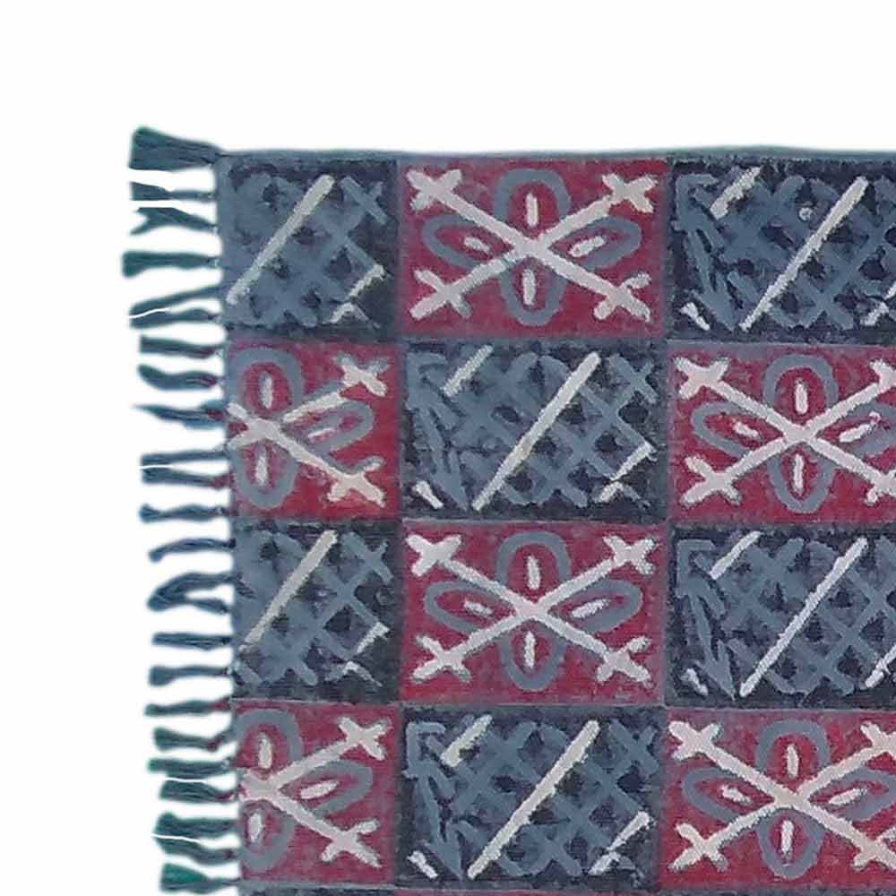 Tapete colorido de design étnico produzido em tecido com borlas.