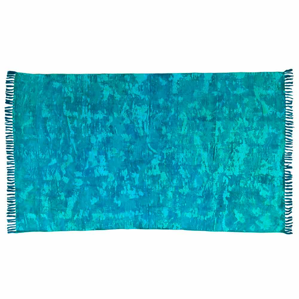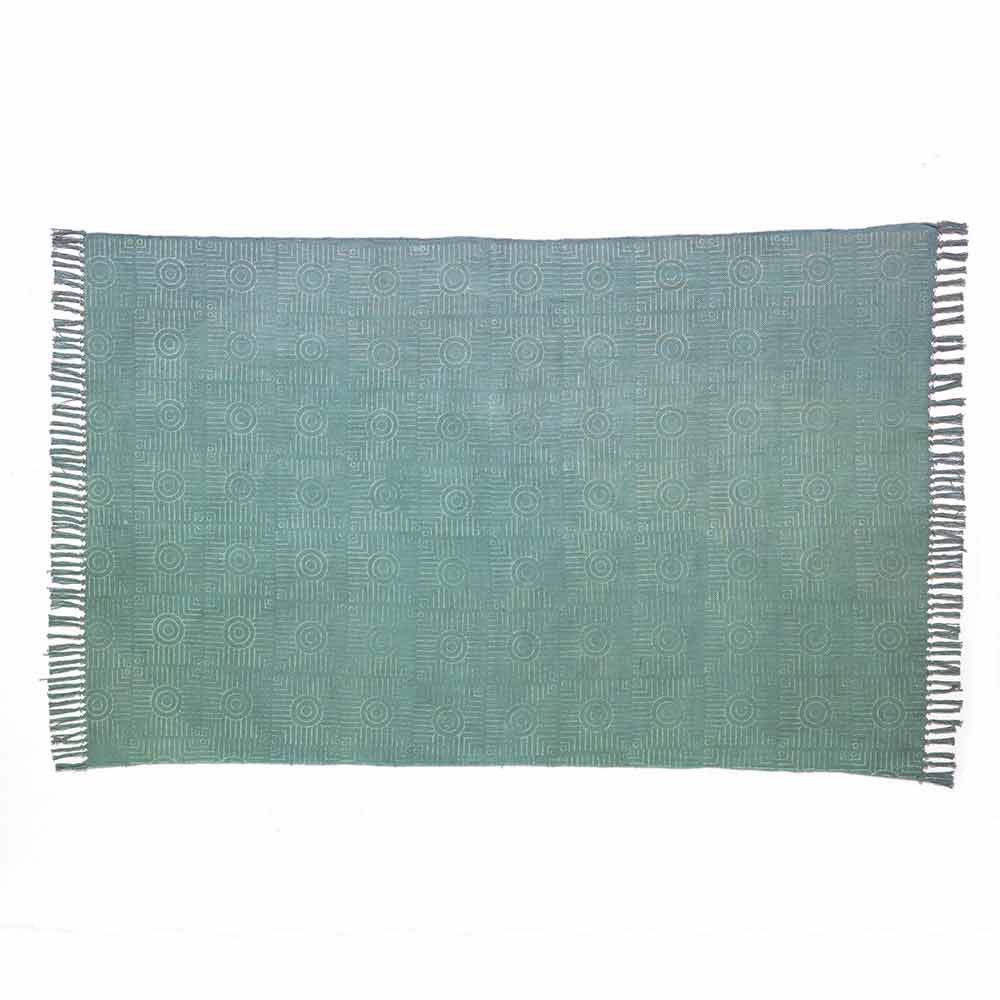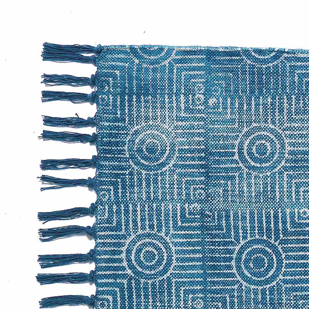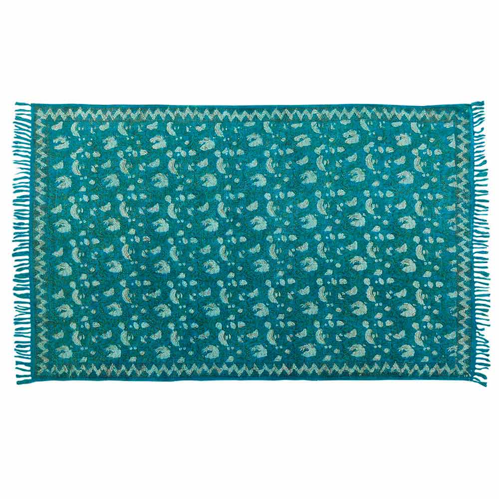 Tapete colorido de design étnico produzido em tecido com borlas.