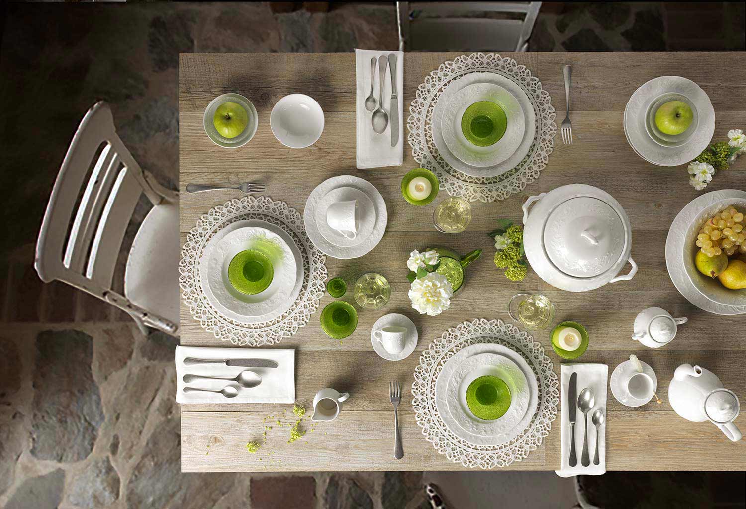 Experimente a cultura da mesa feita de emoções autênticas, refletidas em um branco puro, escolhendo entre estilos criativos e emocionantes, entre formas harmoniosas em porcelana fina que este serviço oferece.